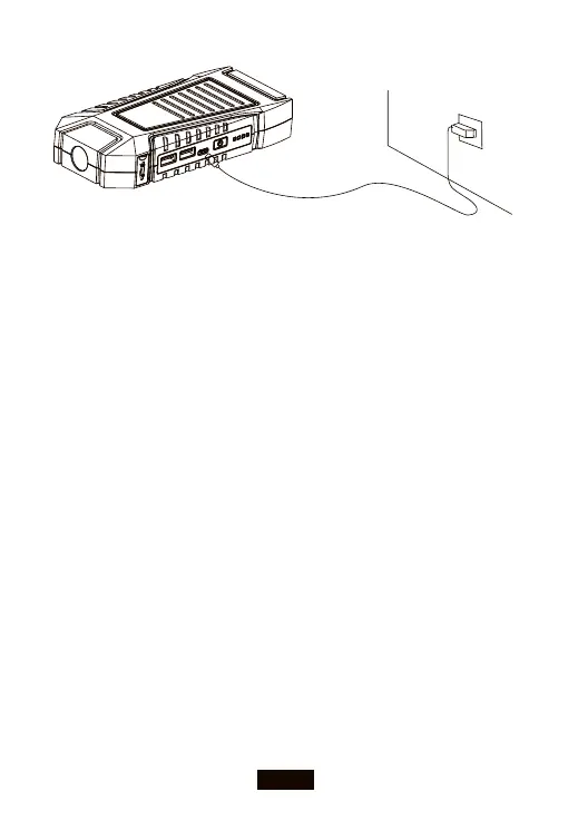 4. Do NOT charge the jump starter via a USB-A power adapter from