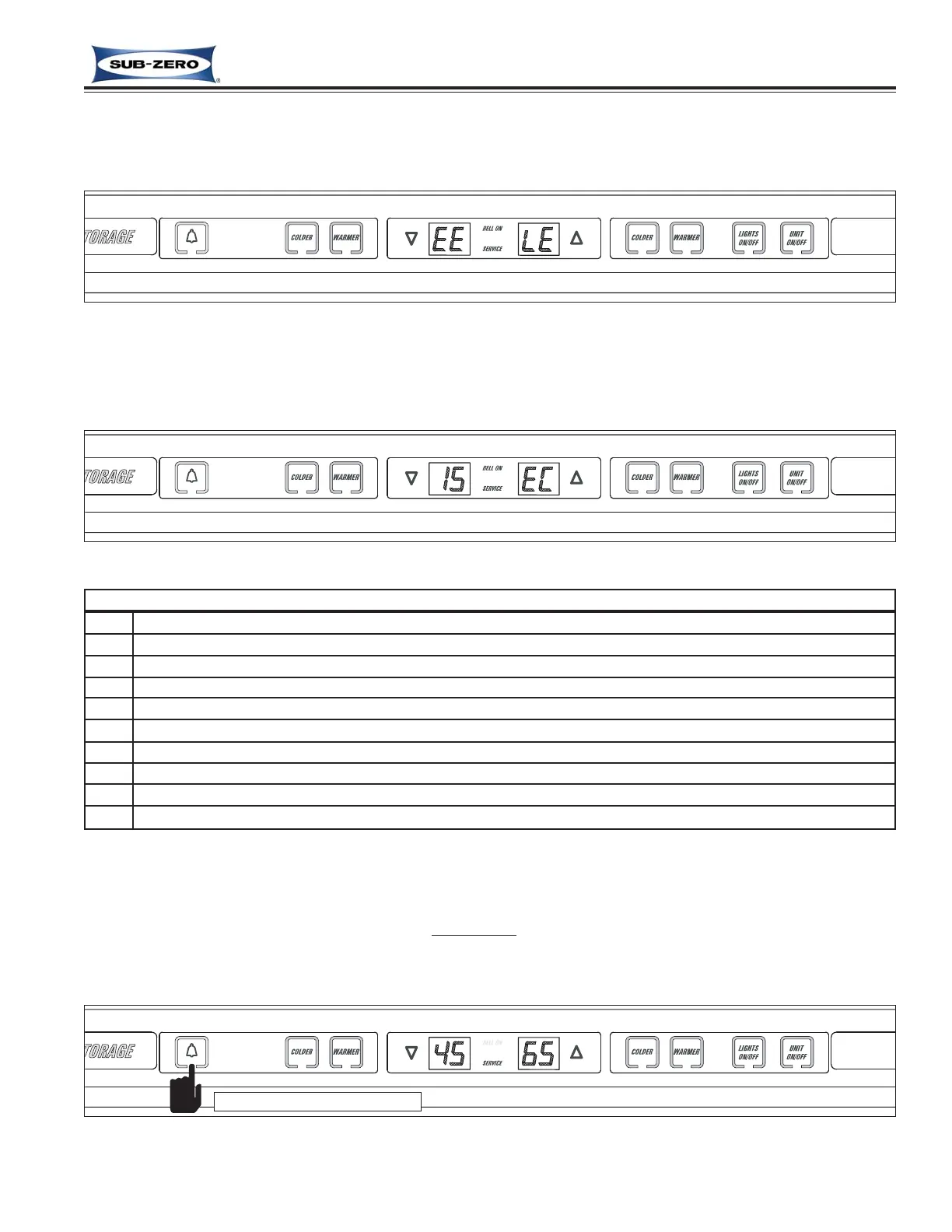 If “EC” is observed in the right display area during Diagnostic Mode - Numbers at left are “Error Codes” (See
