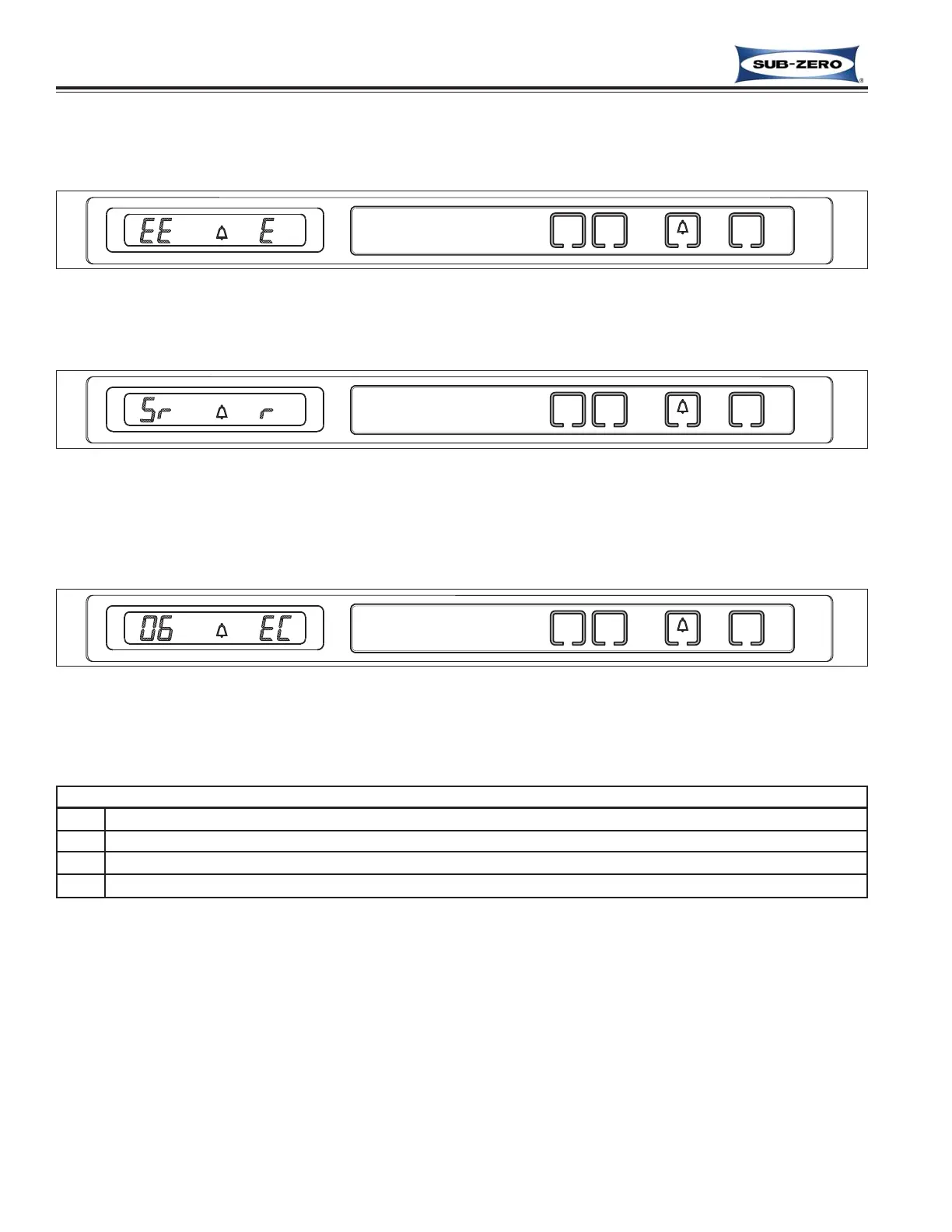 427R-2 Refrigerator Compartment Error Code Table