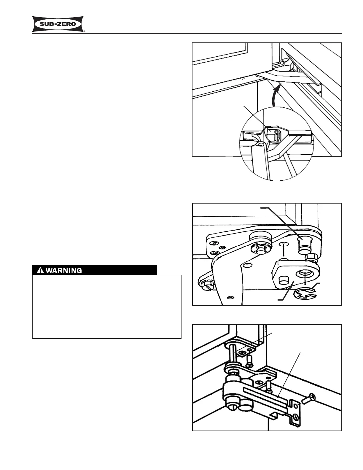 cabinet hinge. Retain door stop by pushing the E-Ring