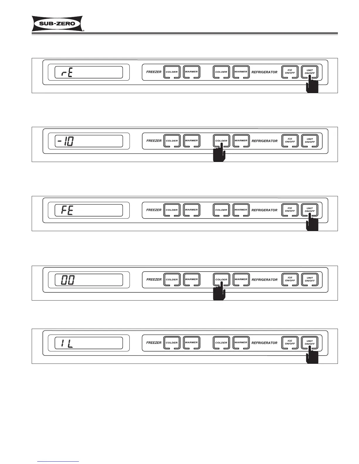 7. Press the COLDER key now to display the fourth reading, which will be the freezer evaporator temperature (See