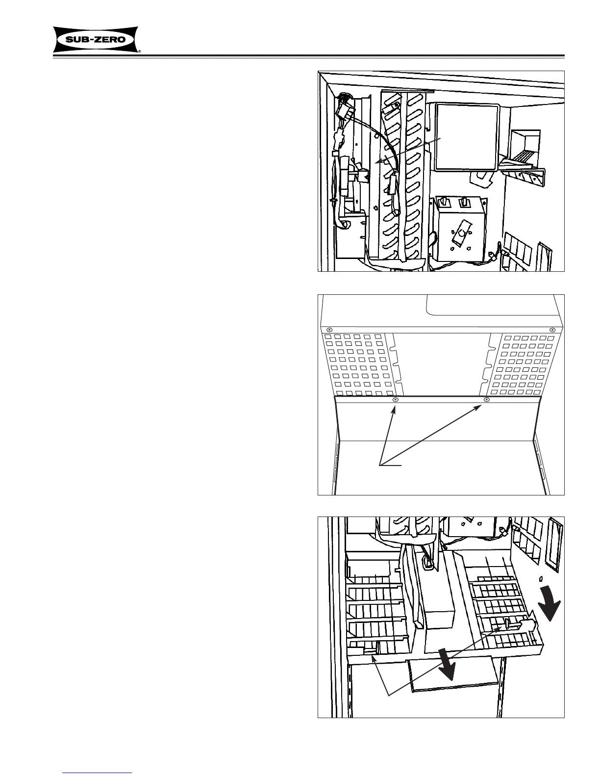 The lower evaporator cover assembly has pegs at the