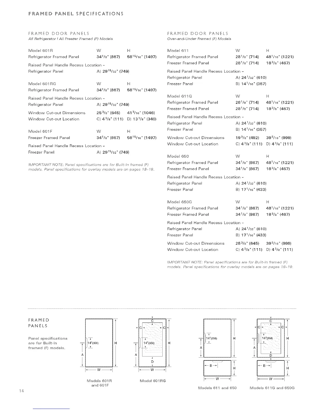 All Refrigerator I All Freezer Framed (F) Models