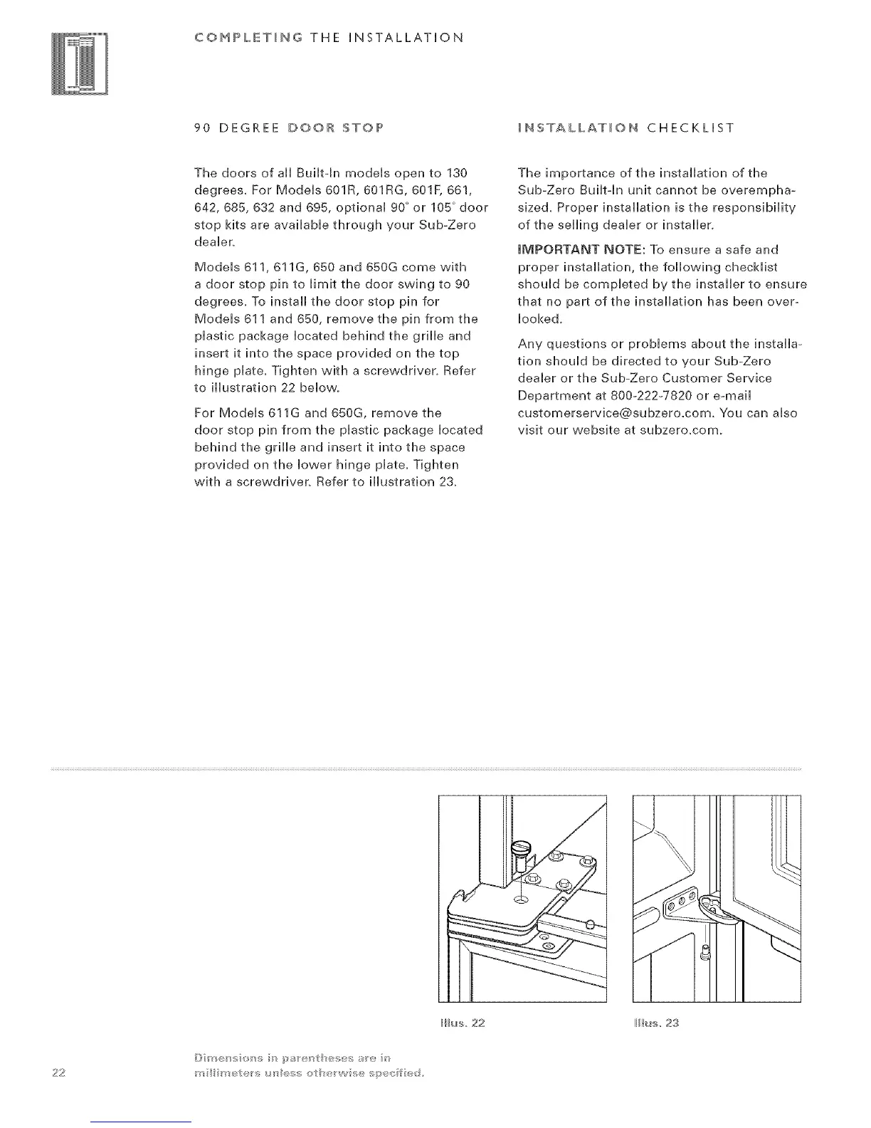 tion shouHd be directed to your Sub-Zero