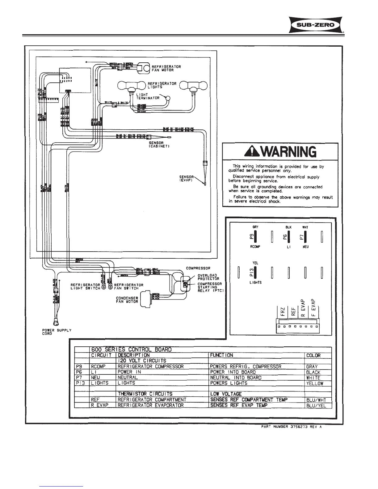 Sub-Zero 642/S - Wiring Diagram for Model 601 R