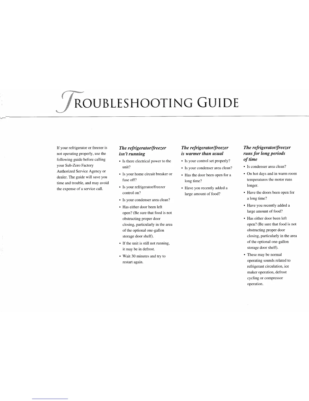 Sub-Zero 680 - CARING FOR YOUR SUB-ZERO; Cleaning Guide; Condenser and Grille Maintenance