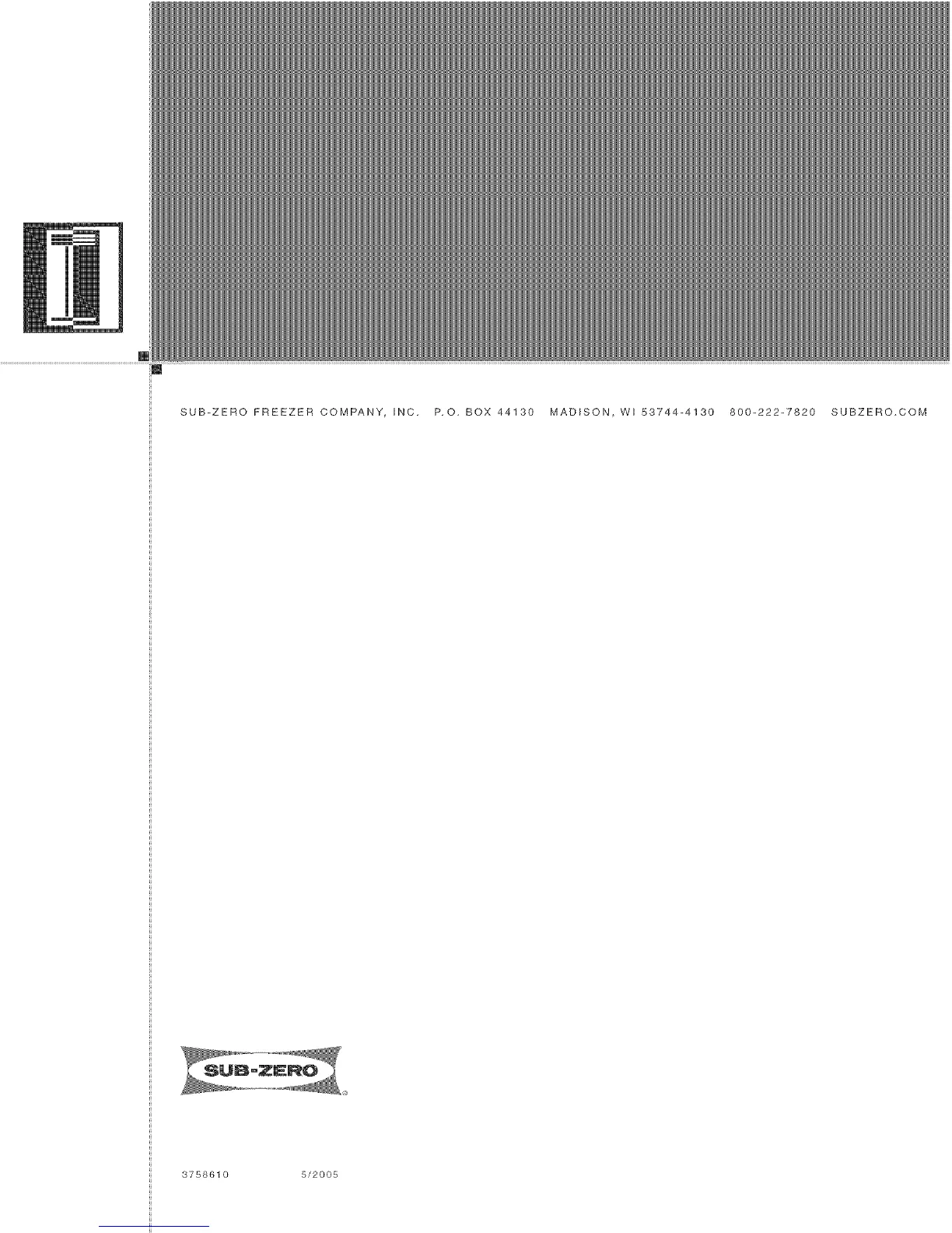 SUB-ZERO FREEZER COMPANY, INC PO BOX 44130 MADISON, WI 53744-4130 800-222-7820 SUBZERO COM