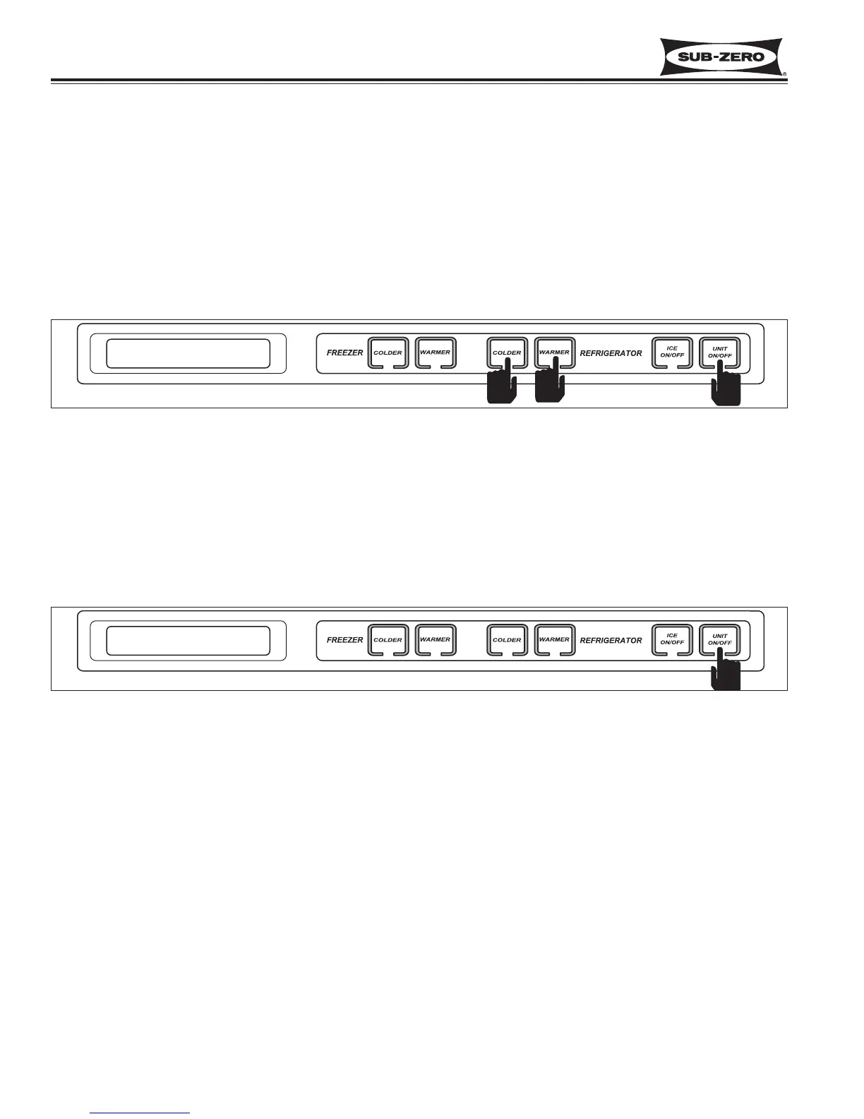 is appears on the LCD. With “OFF” displayed, press and hold the WARMER, COLDER keys, then the UNIT