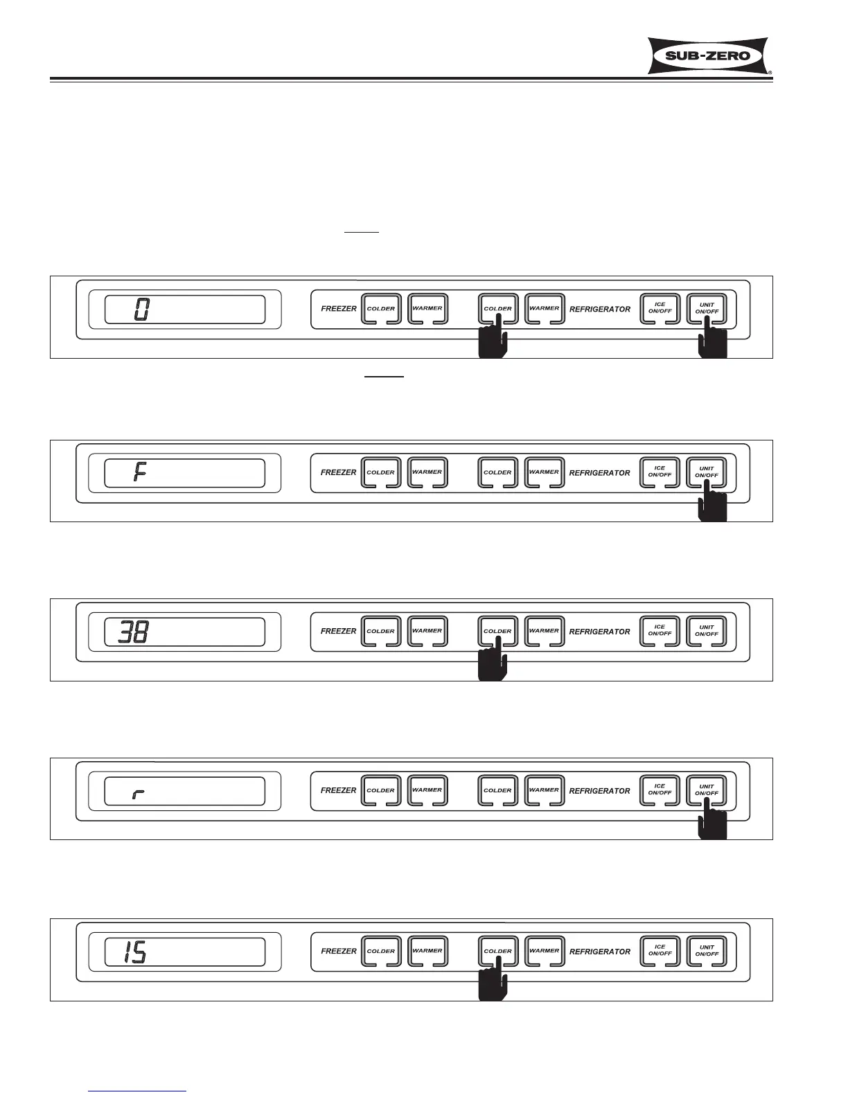 5. Press the COLDER key now to display the third reading, which will be the refrigerator evaporator temperature