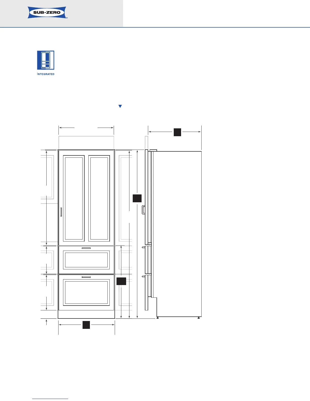 an Integrated 27" (686) wide tall unit within frameless