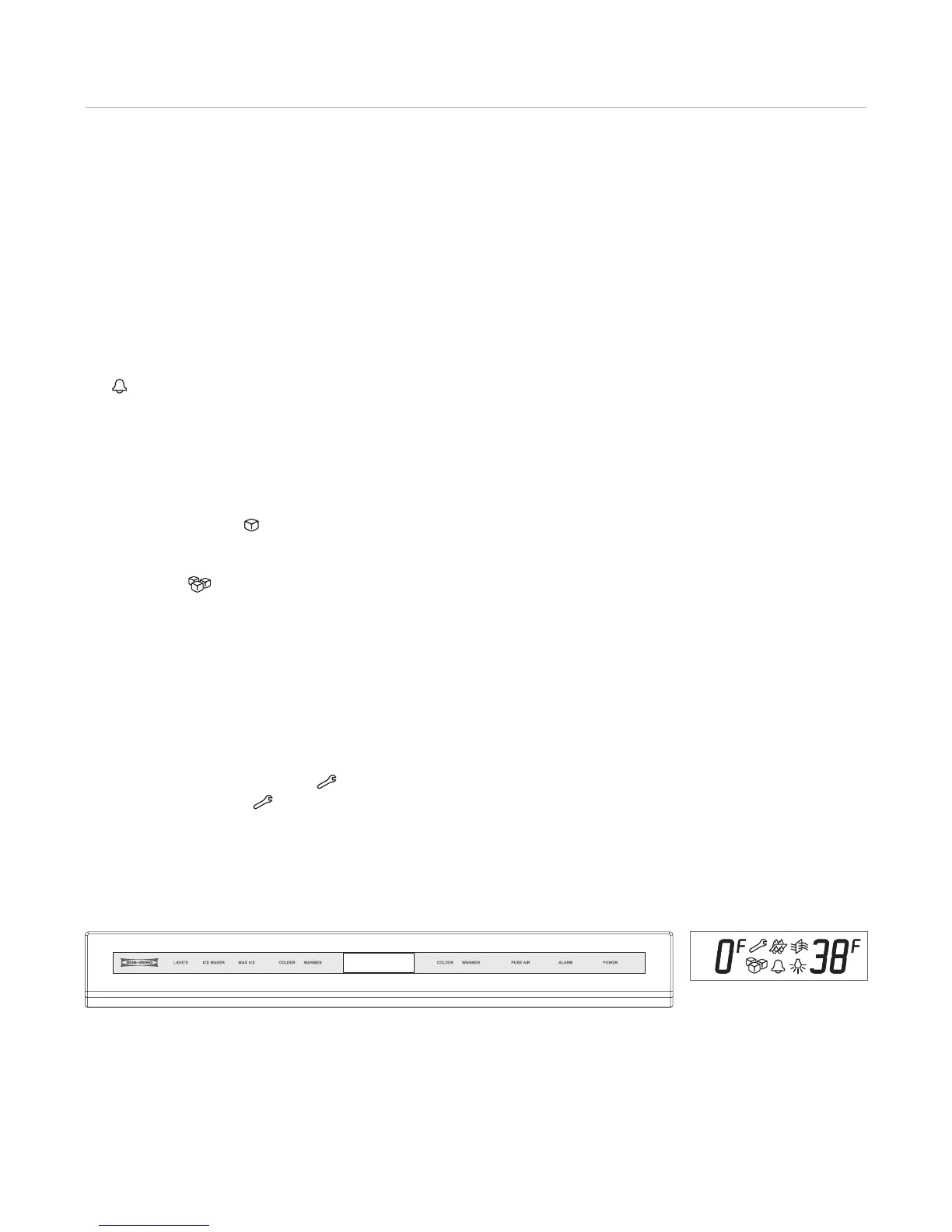 Control panel (model BI-30UG shown). Control panel display.