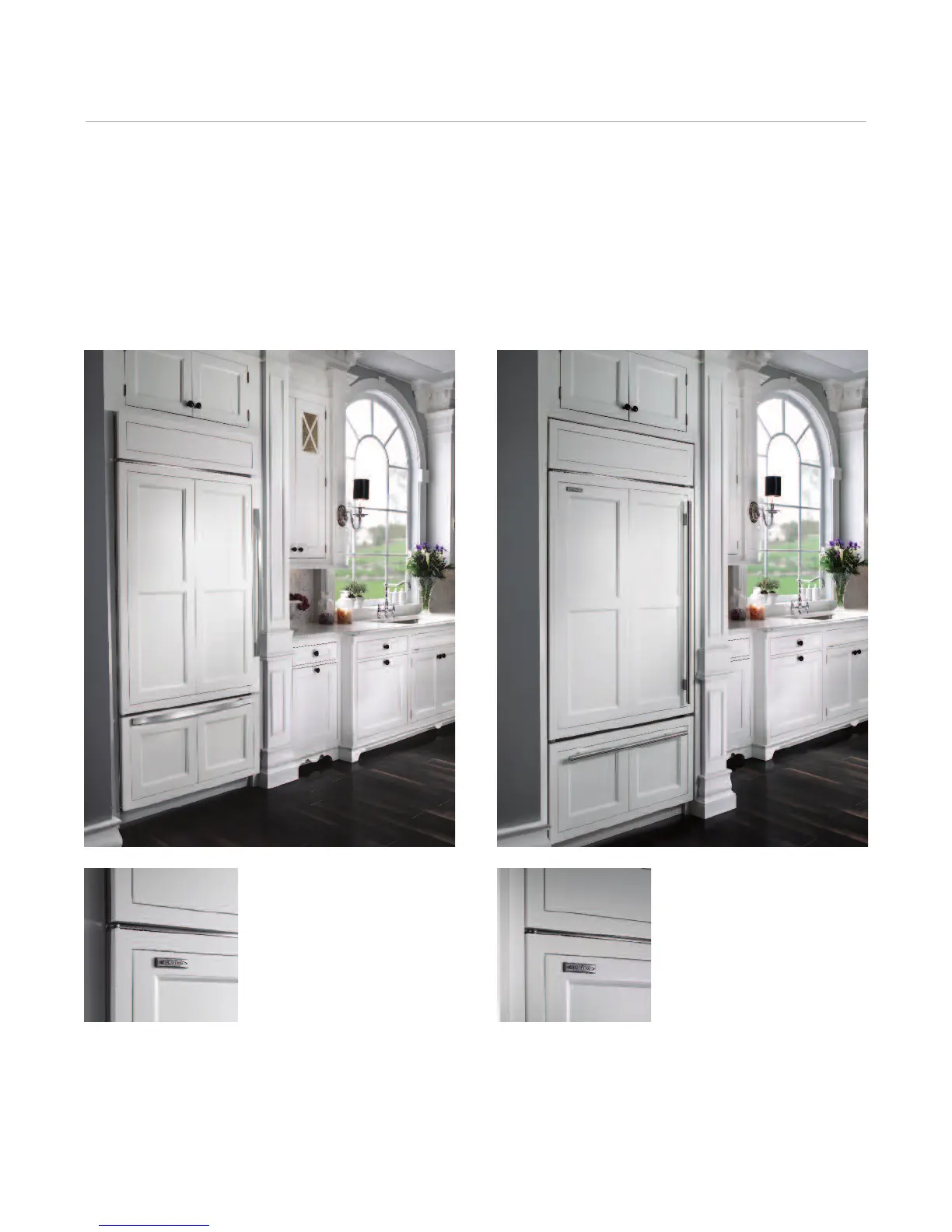 with surrounding cabinetry. Three handle options coordinate with Wolf cooking products.