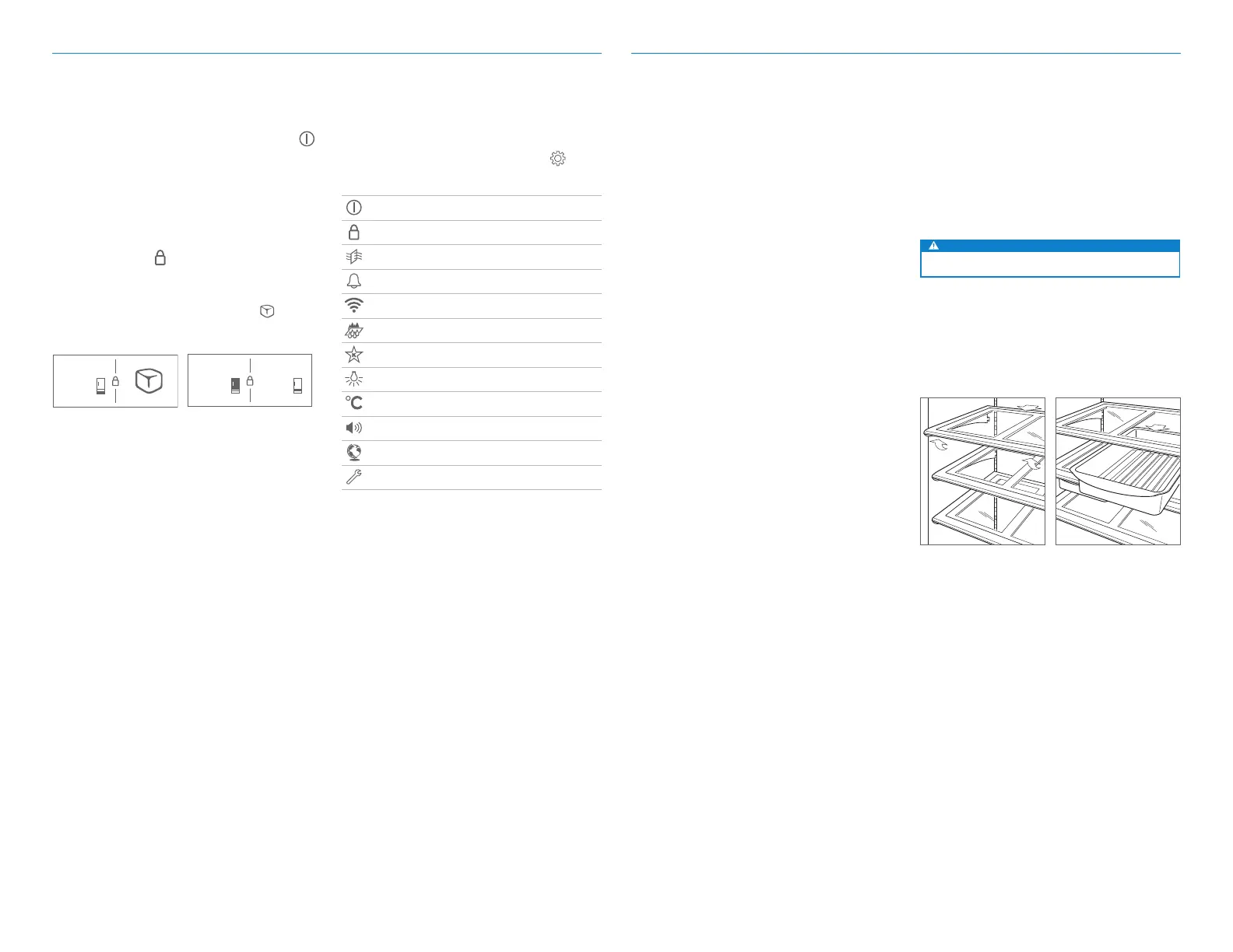 重要提示:取放玻璃搁架时要小心,以防止破损或划伤冰箱内