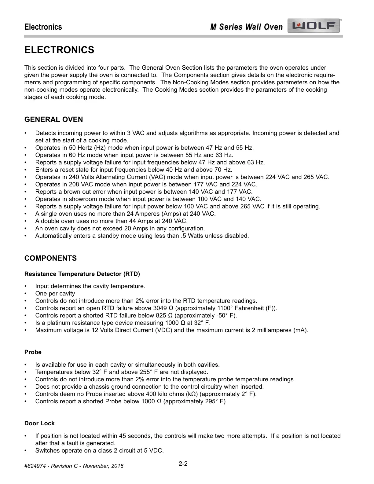 given the power supply the oven is connected to. The Components section gives details on the electronic require-