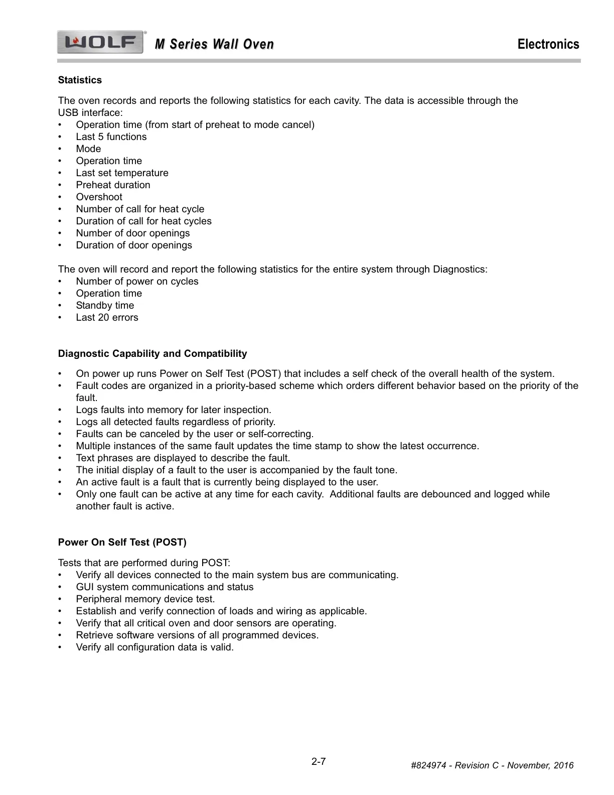 The oven will record and report the following statistics for the entire system through Diagnostics: