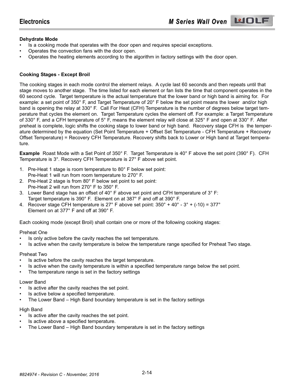 Each cooking mode (except Broil) shall contain one or more of the following cooking stages: