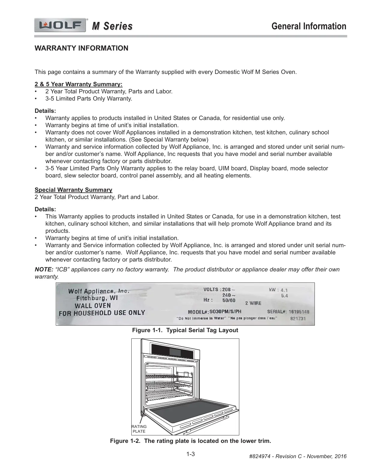 This page contains a summary of the Warranty supplied with every Domestic Wolf M Series Oven.