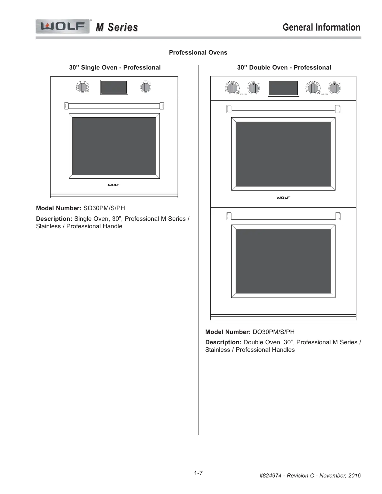 Description: Single Oven, 30”, Professional M Series /
