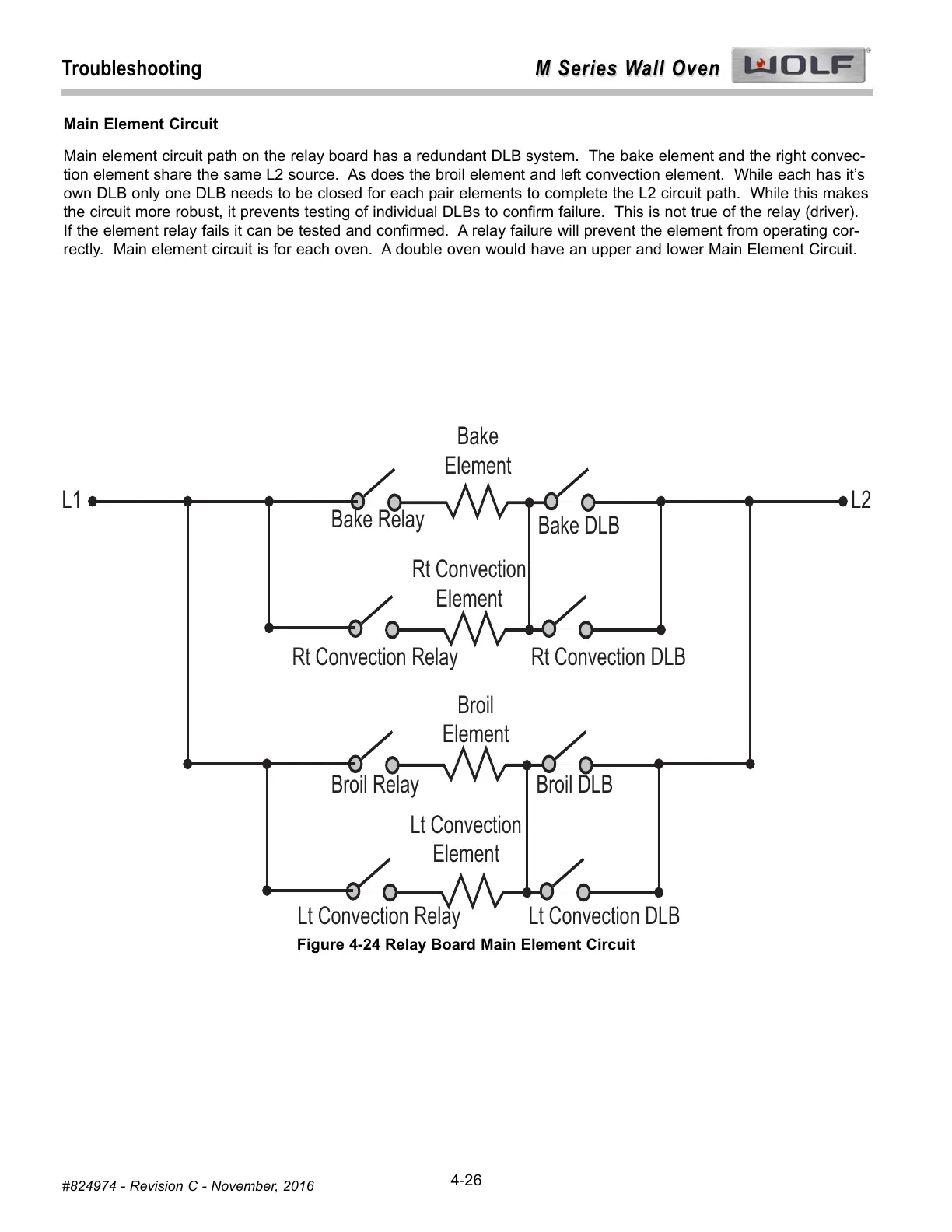 Main element circuit path on the relay board has a redundant DLB system. The bake element and the right convec-