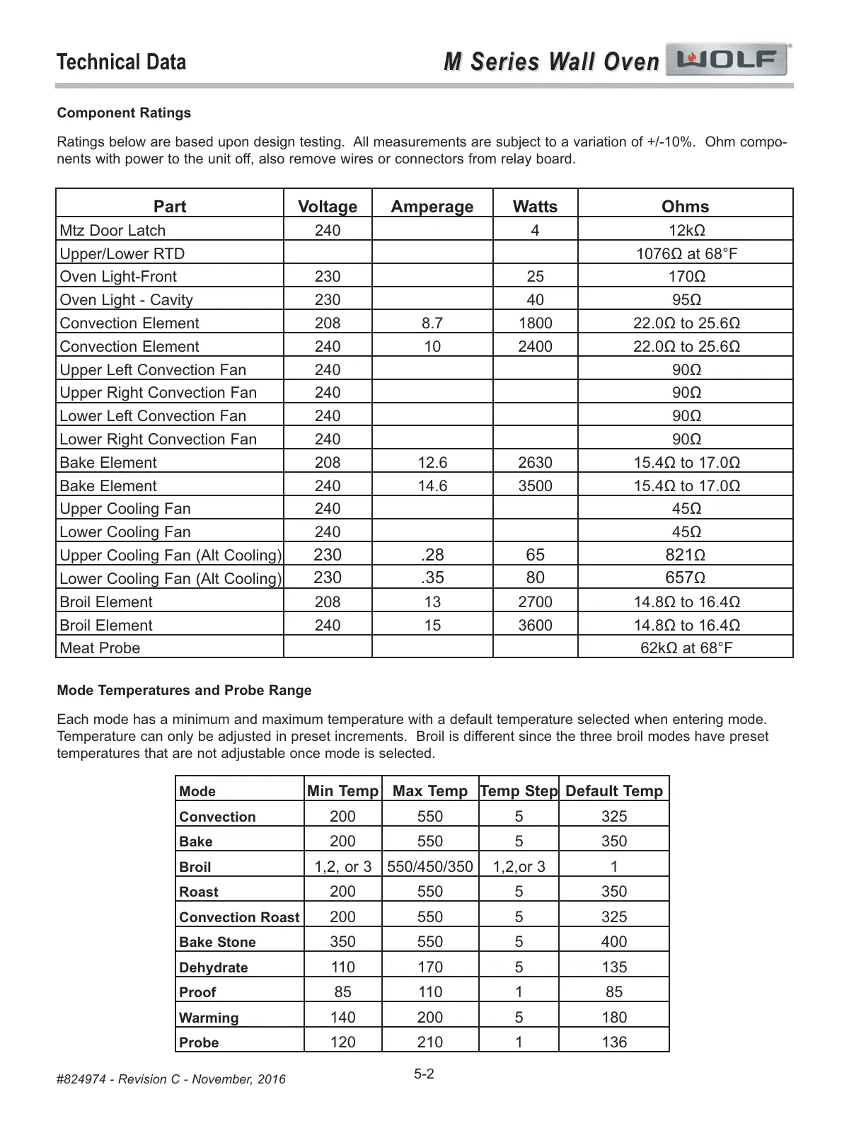 Ratings below are based upon design testing. All measurements are subject to a variation of +/-10%. Ohm compo-