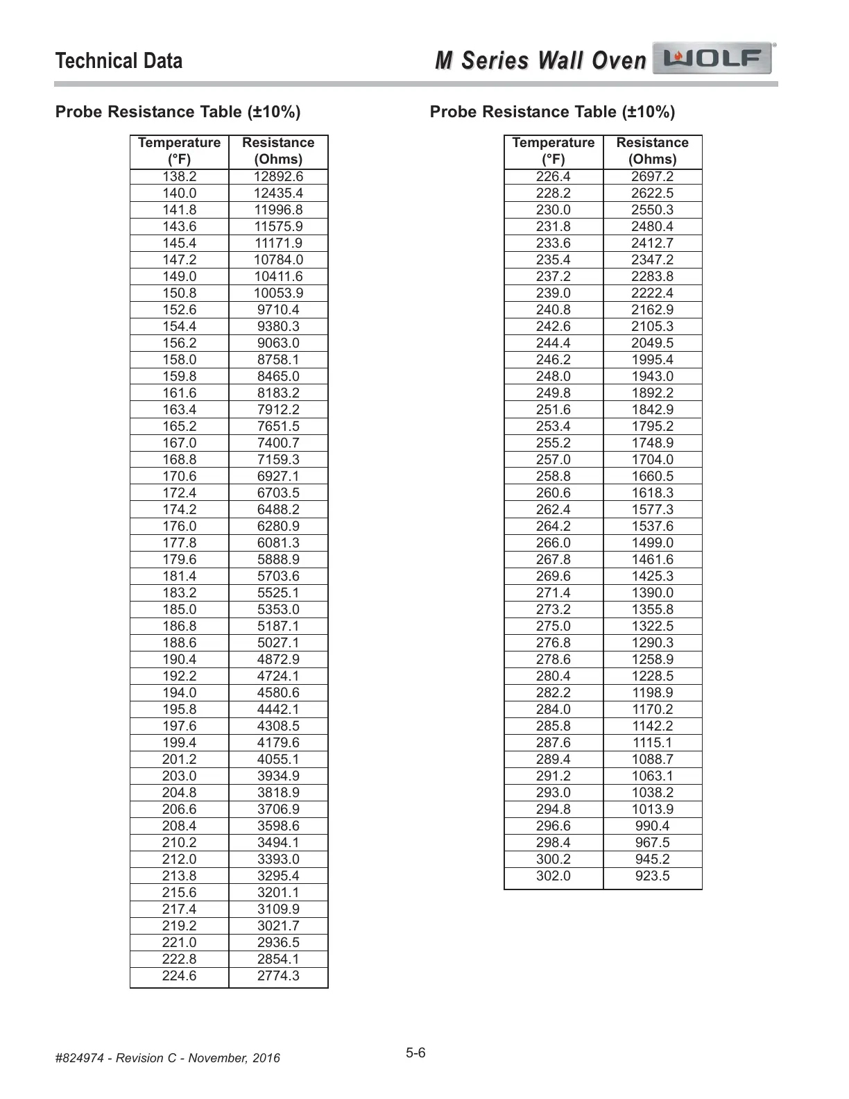 Probe Resistance Table 10%) Probe Resistance Table 10%)