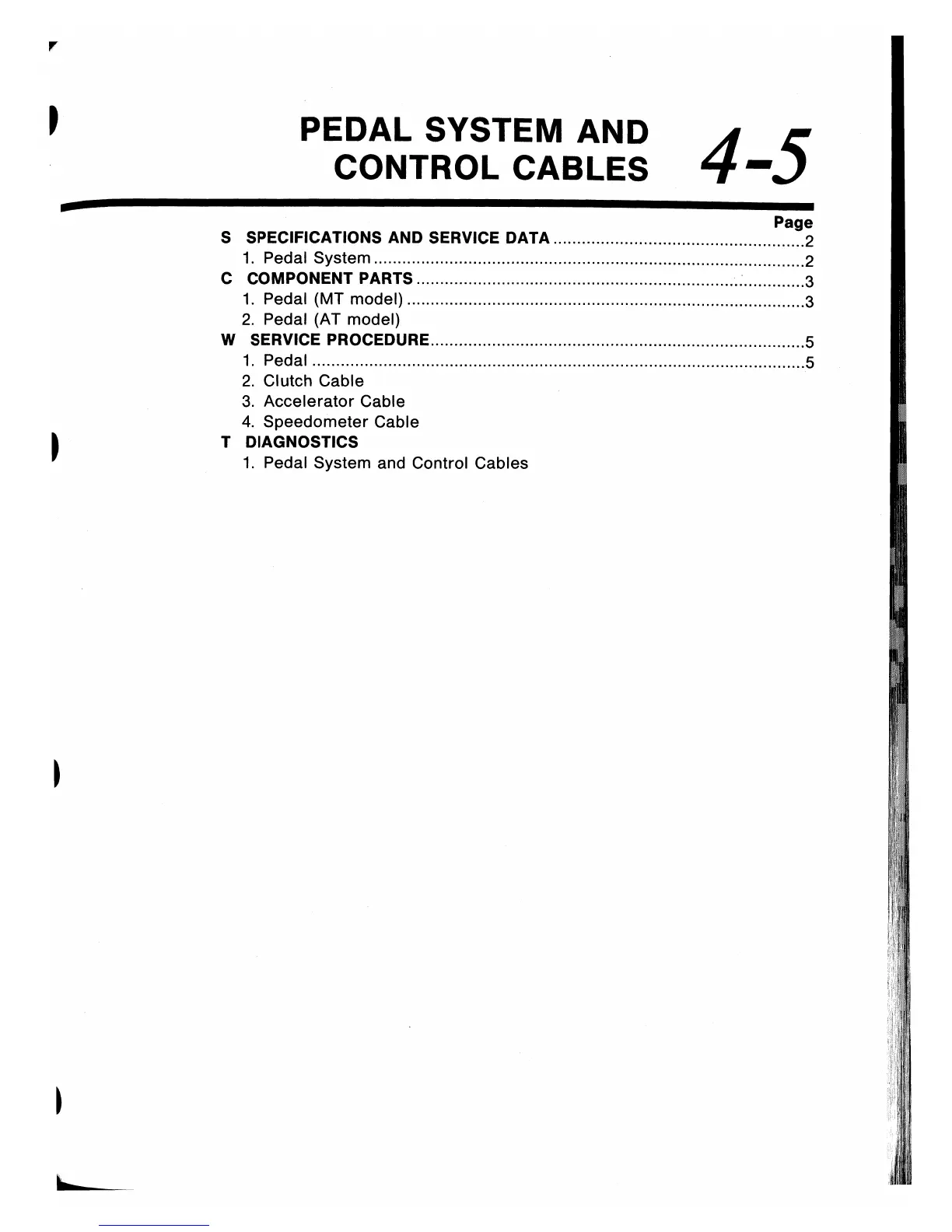 Subaru 1994 Impreza - Pedal System and Control Cables