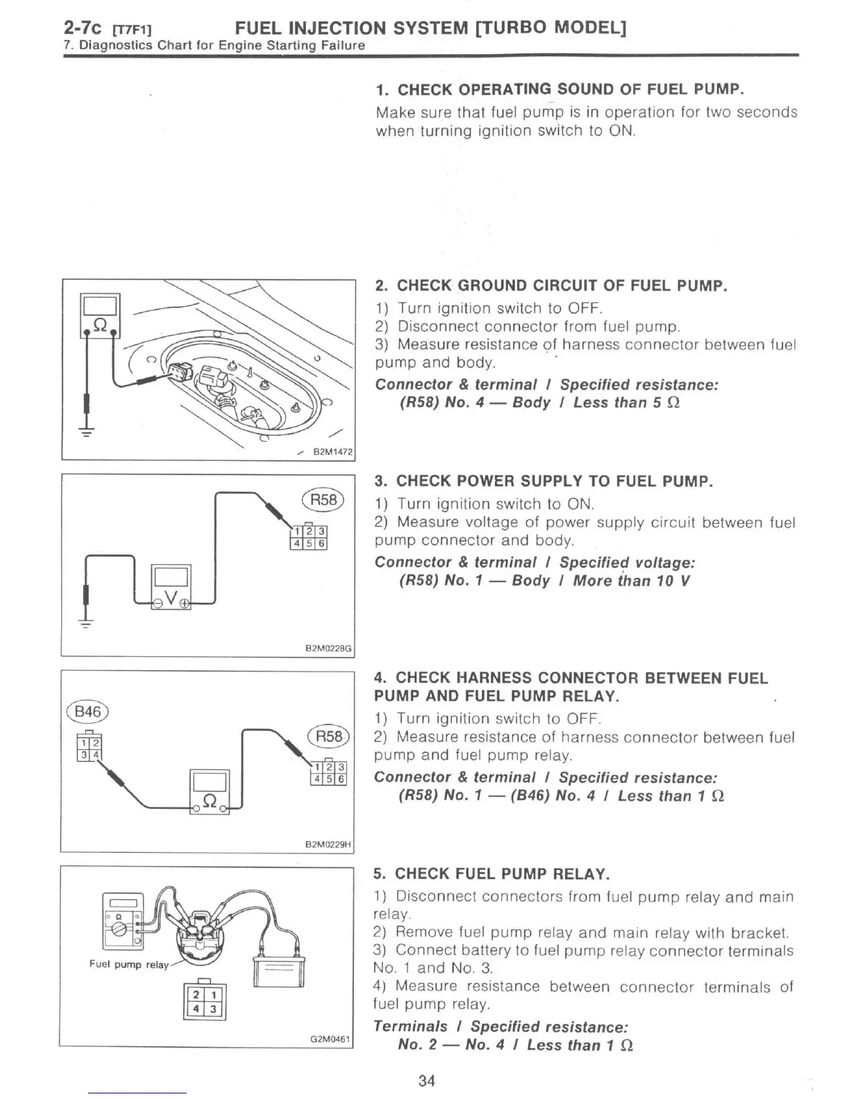Subaru 1997 Impreza - Check Operating Sound of Fuel Pump; Check Ground Circuit of Fuel Pump; Check Power Supply to Fuel Pump; Check Harness Connector between Fuel Pump and Fuel Pump Relay