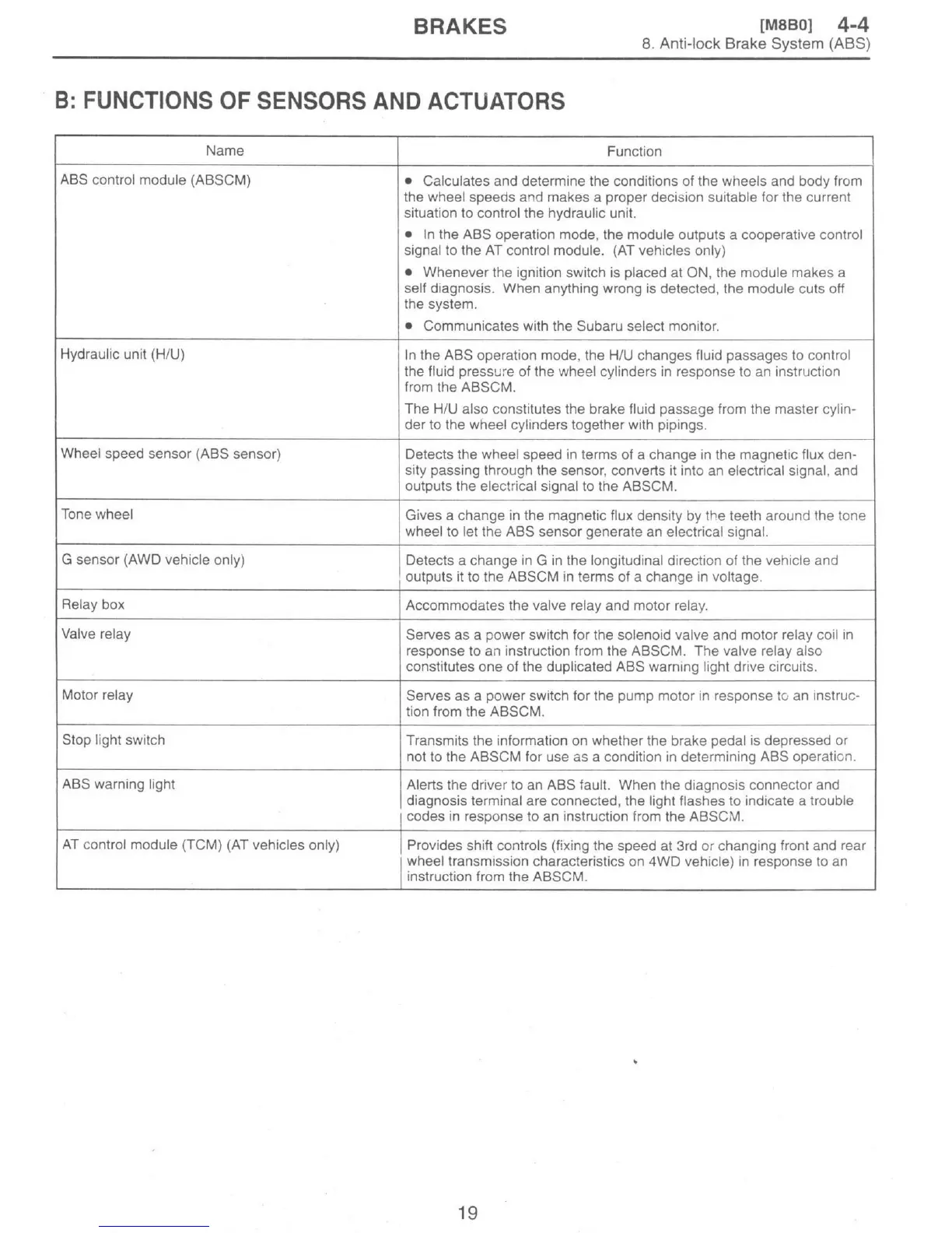 Subaru 1997 Impreza - Functions of Sensors and Actuators