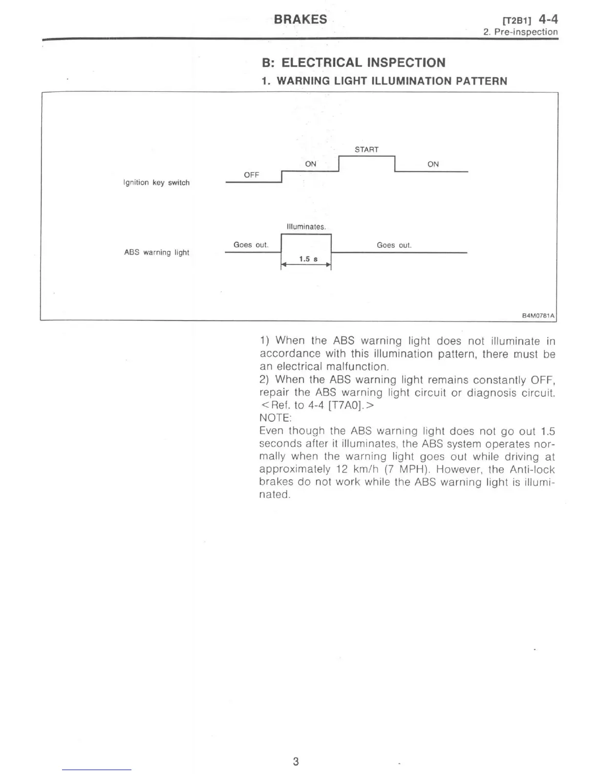 Subaru 1997 Impreza - Warning Light Illumination Patterm
