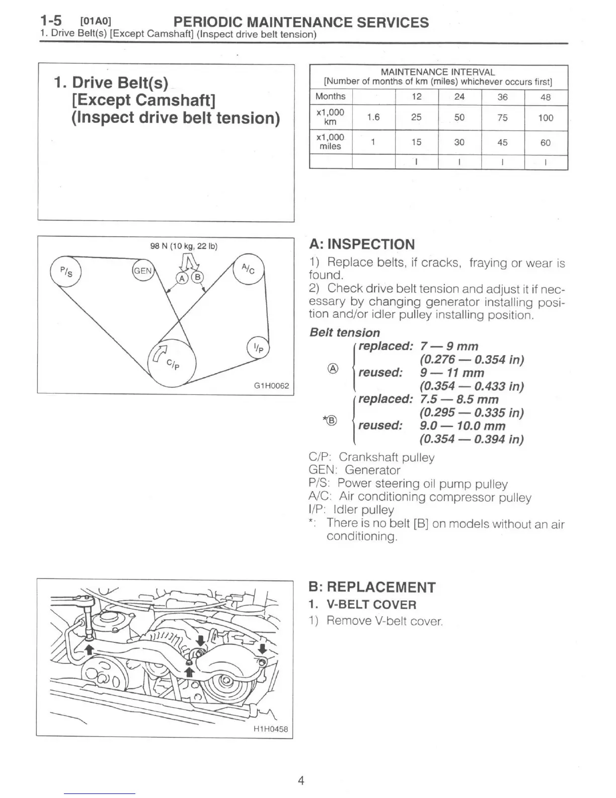 Subaru 1997 Impreza - Drive Belts Inspection; Drive Belts Replacement