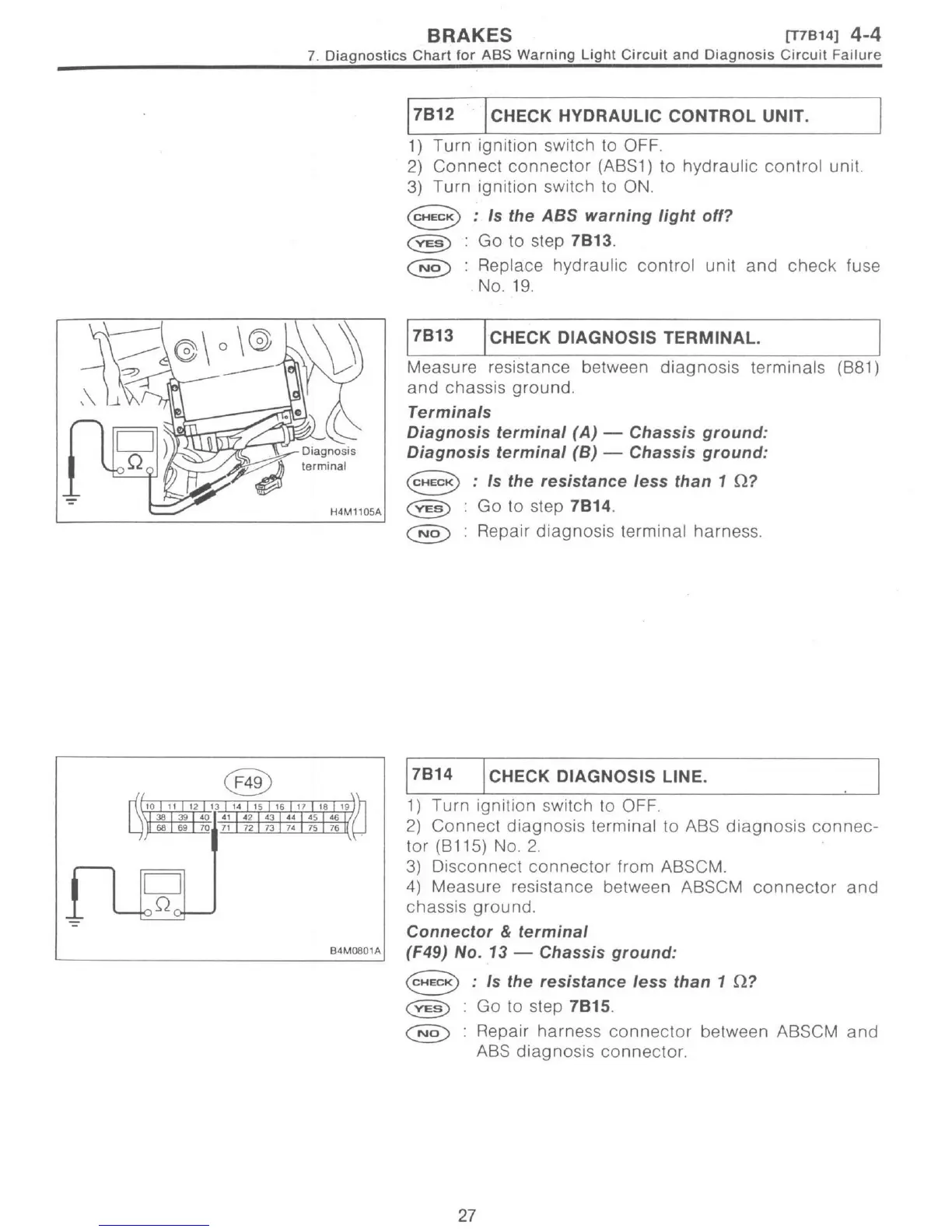 Subaru 1997 Impreza - Check Hydraulic Control Unit; Check Diagnosis Terminal; Check Diagnosis Line