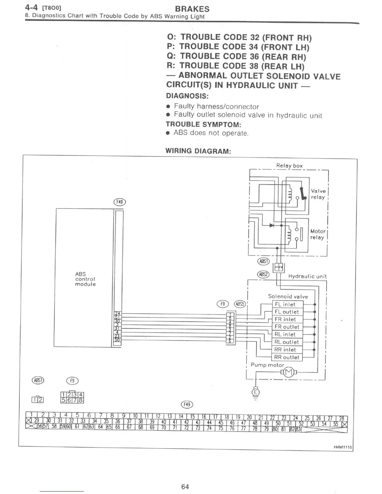 Subaru 1997 Impreza - Trouble Code 32 (Front RH); Trouble Code 34 (Front LH); Trouble Code 36 (Rear RH); Trouble Code 38 (Rear LH)