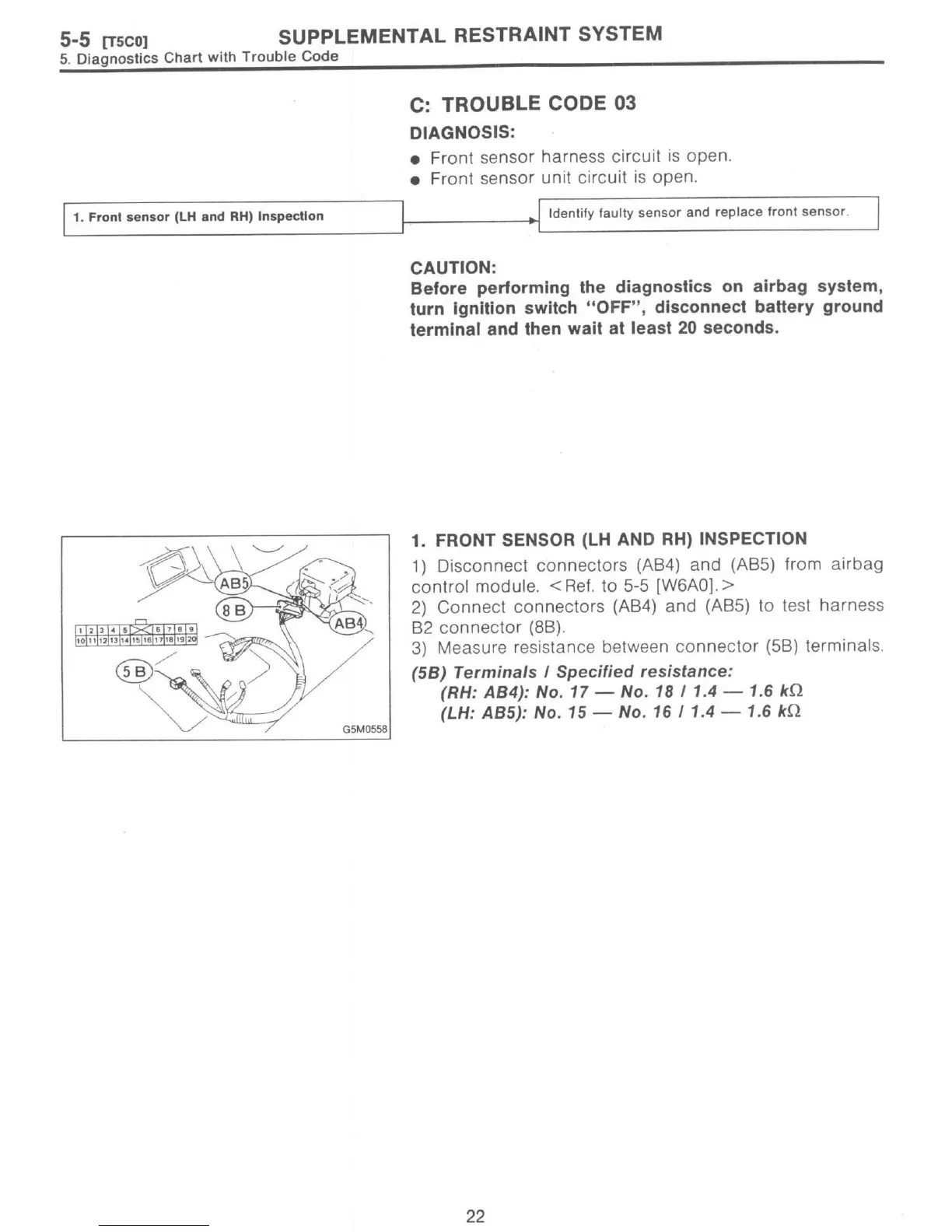 Subaru 1997 Impreza - Trouble Code 03; Front Sensor (LH and RH) Inspection