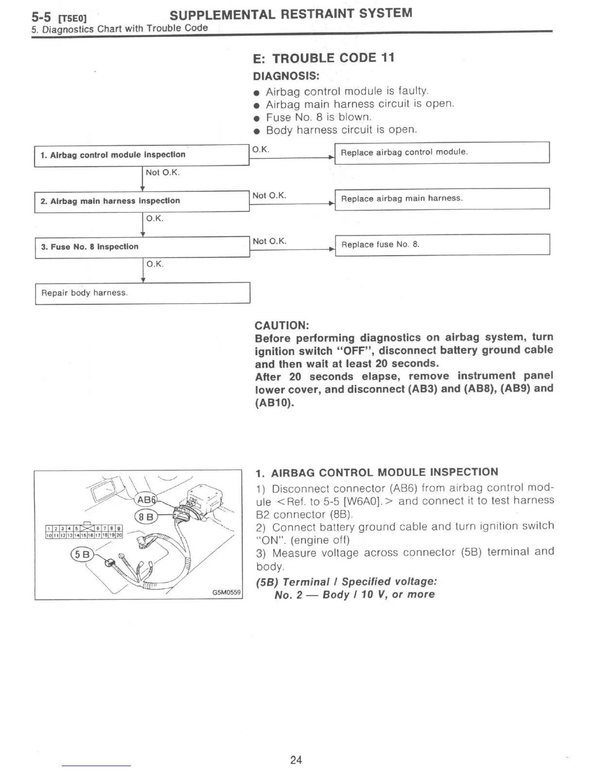 Subaru 1997 Impreza - Trouble Code 11; Airbag Control Module Inspection