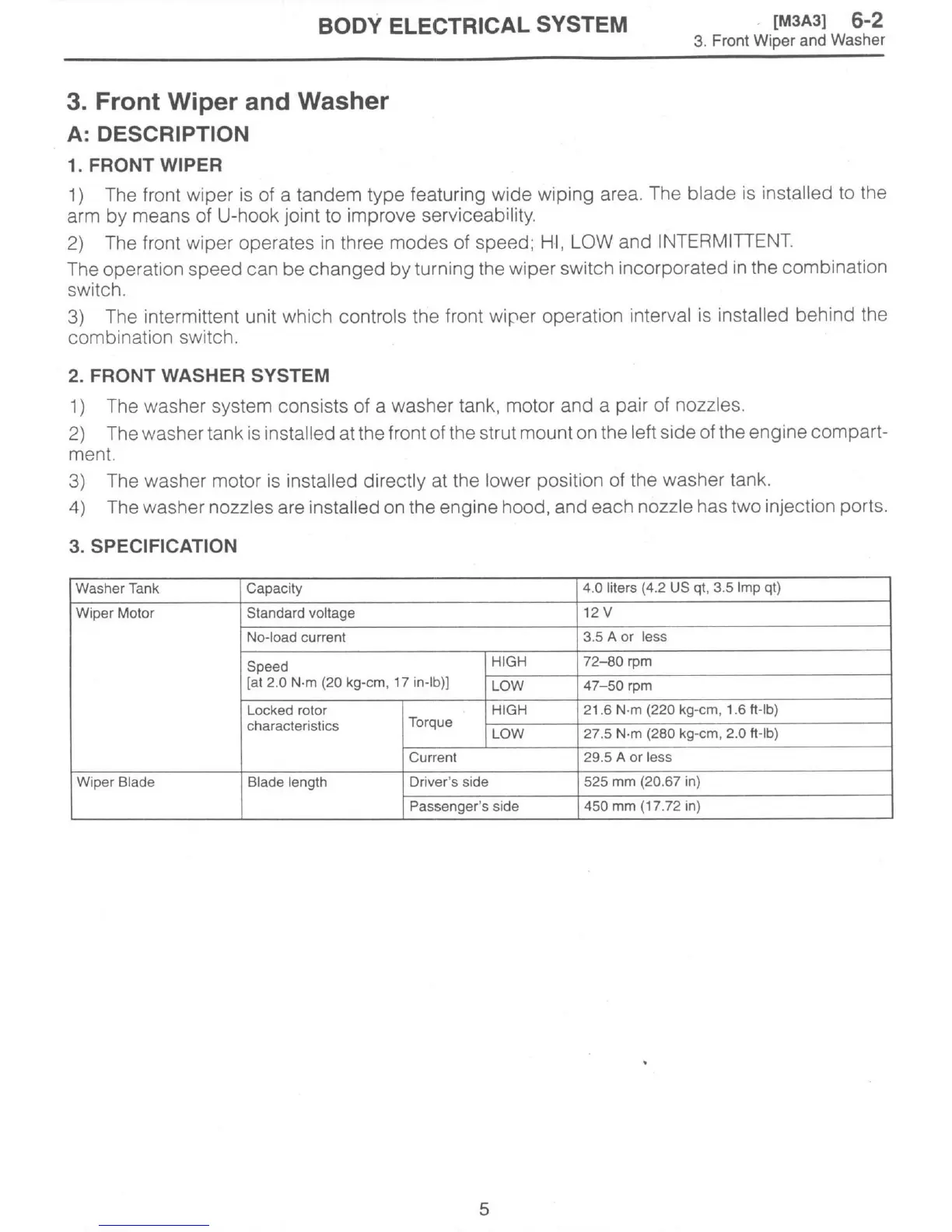 Subaru 1997 Impreza - Front Wiper; Front Washer System
