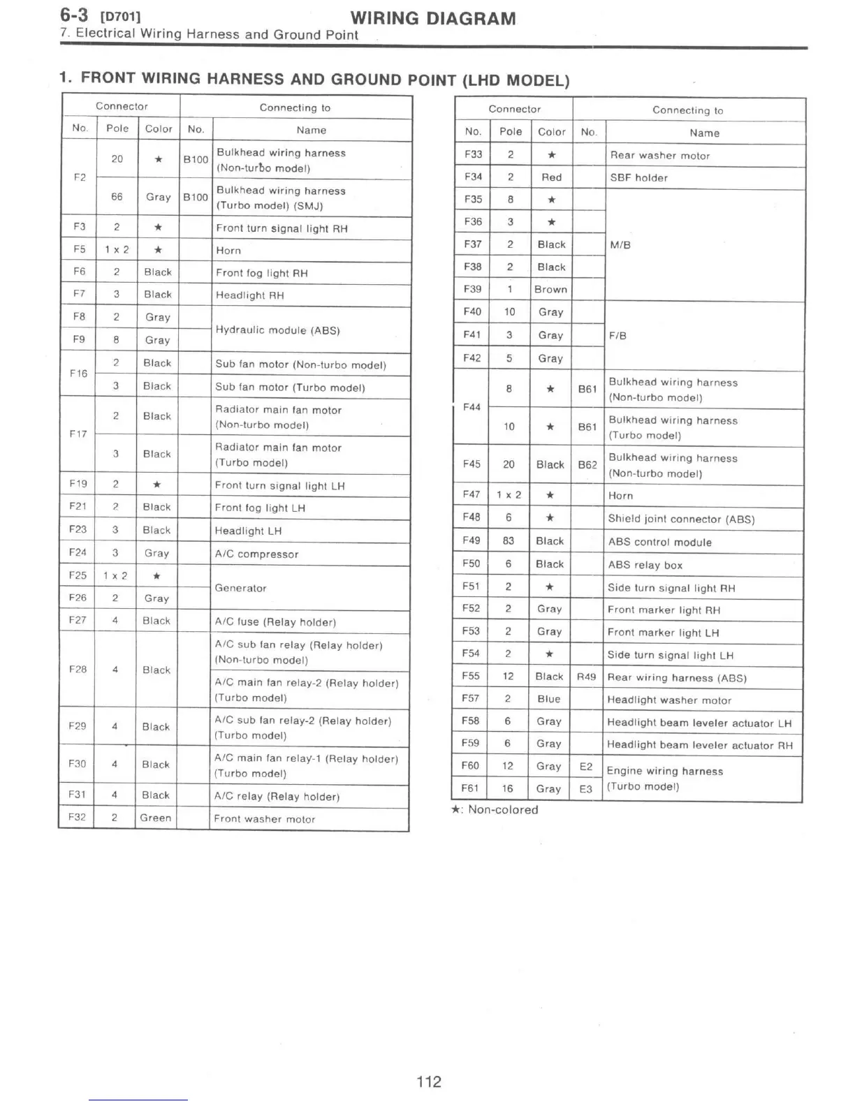 Subaru 1997 Impreza - Front Wiring Harness and Ground Point Wiring Diagram