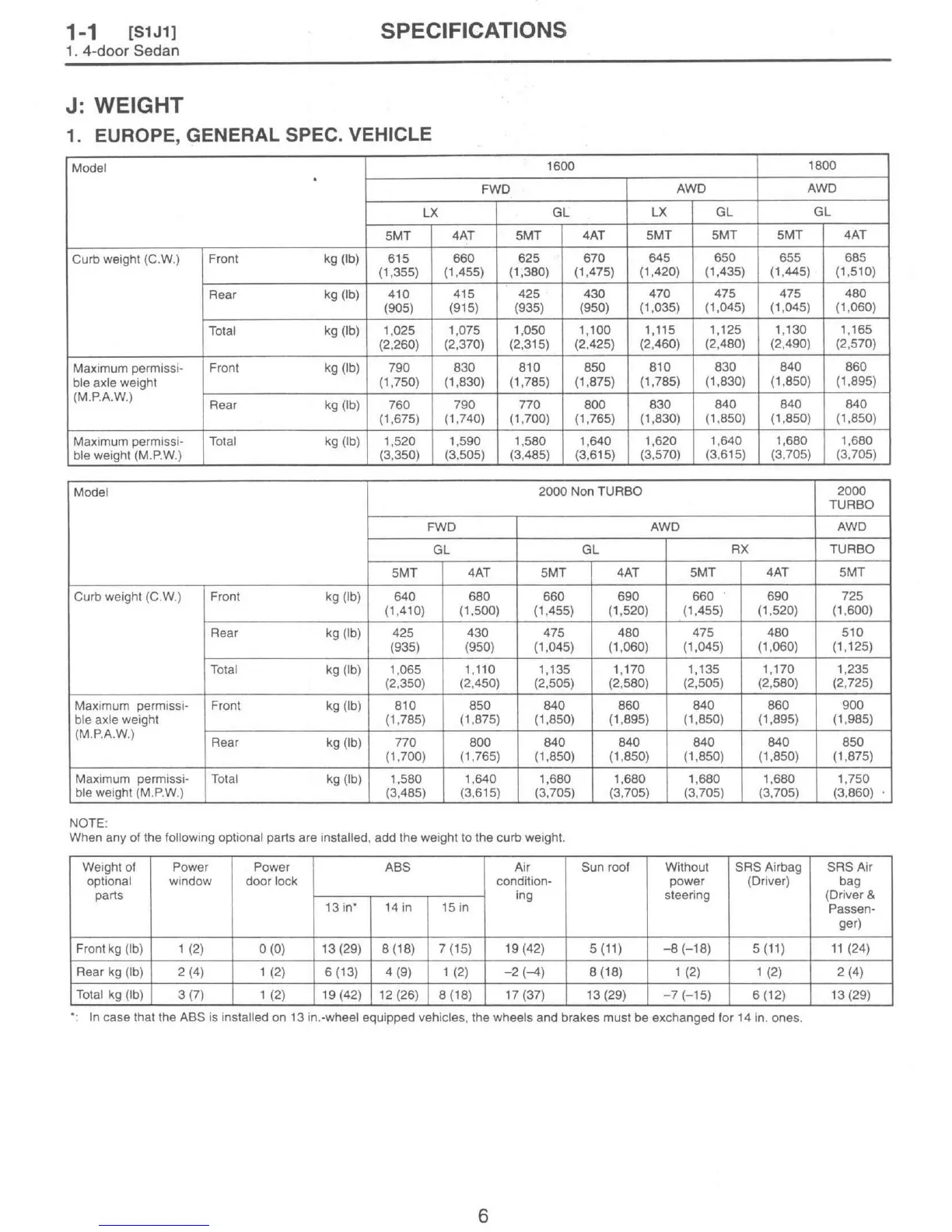 Subaru 1997 Impreza - Weight