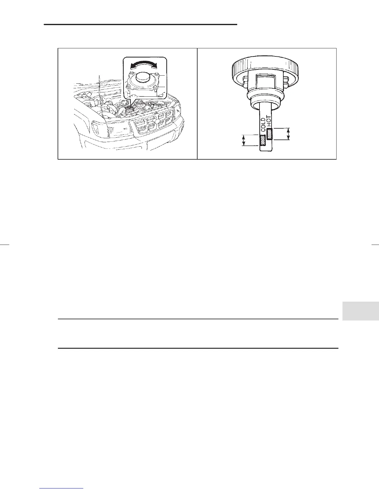 steering system (approximately 70°F [21°C]), read the fluid level on the