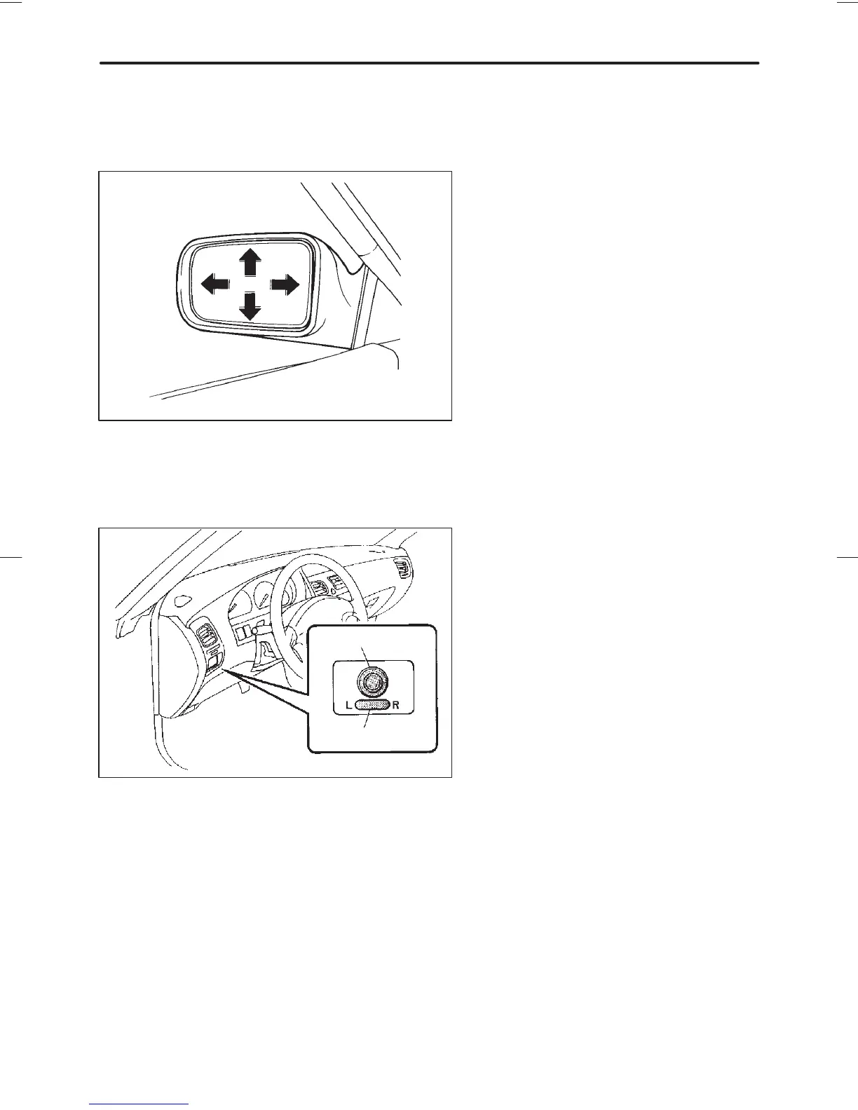 To adjust the mirrors by hand, push where indicated by the arrows.