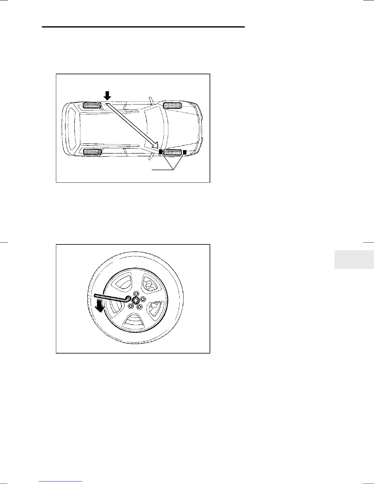7. Place the jack under the side sill at the front or rear jack-up point clos-