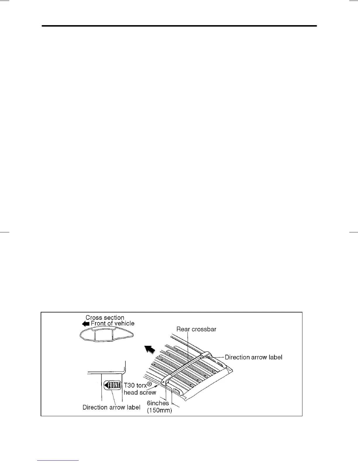 ports rest on the top of the roof rails approximately 6 inches (150 mm)