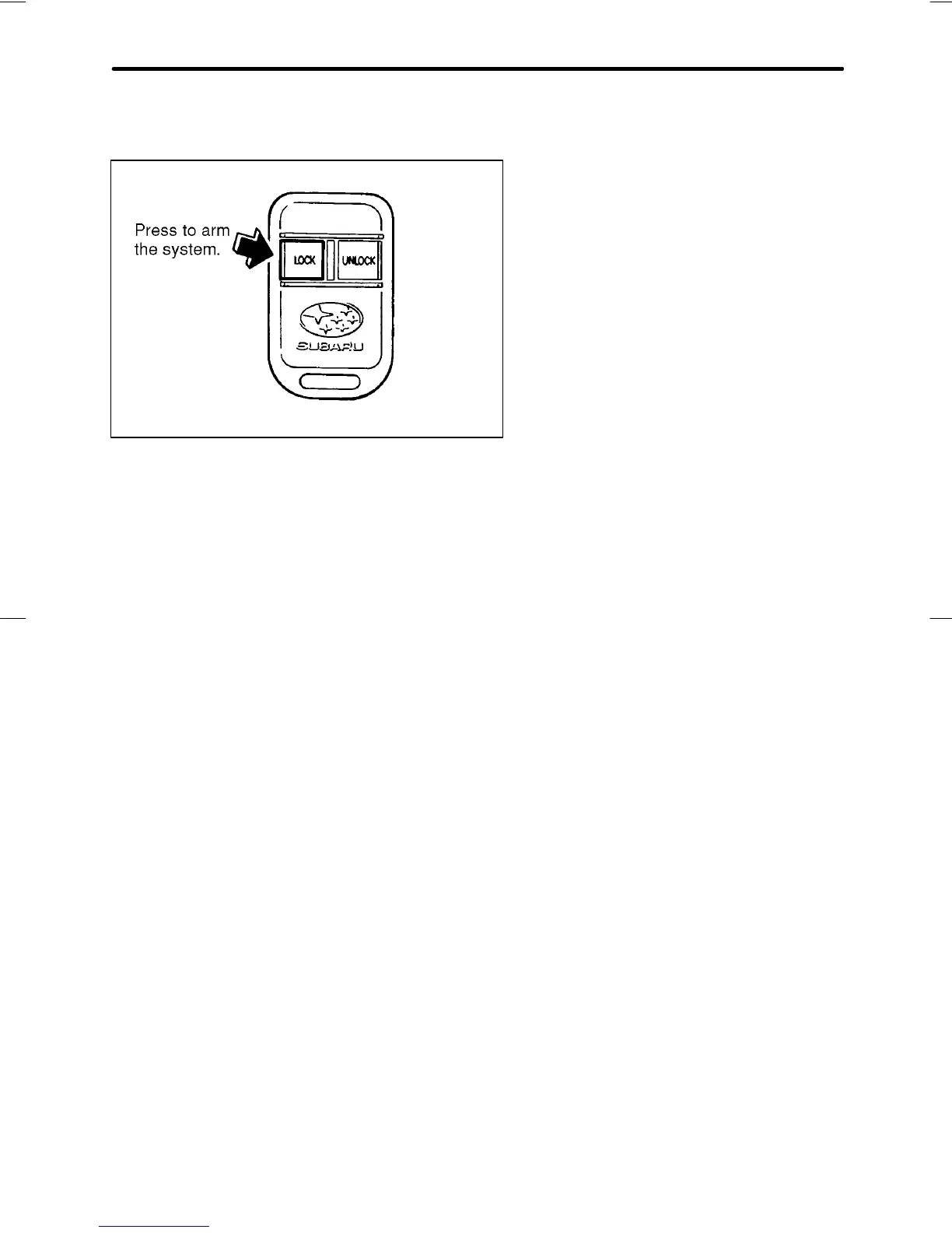 To arm the system, close all doors, then press the “LOCK” button. The
