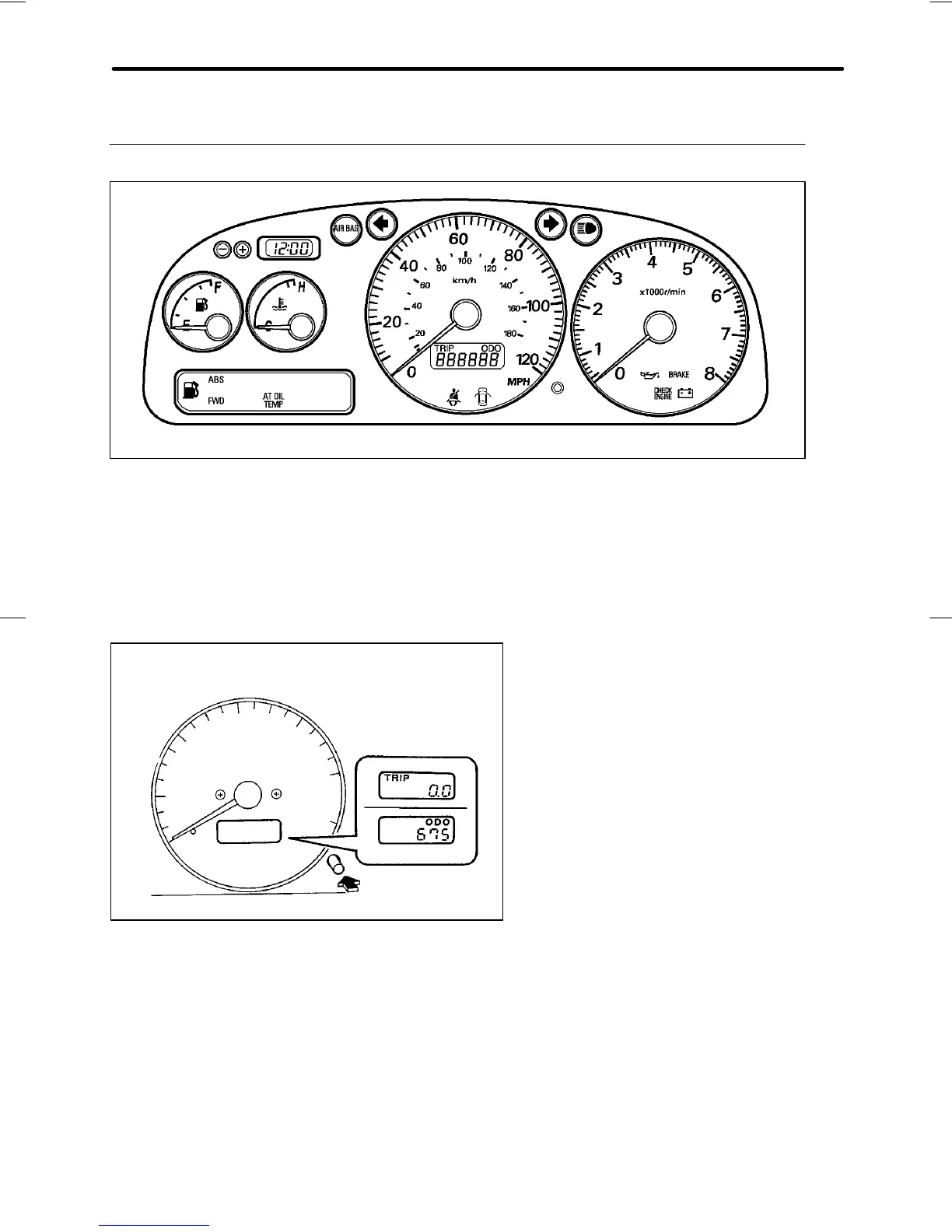 This meter displays the odometer and trip meter when the ignition switch