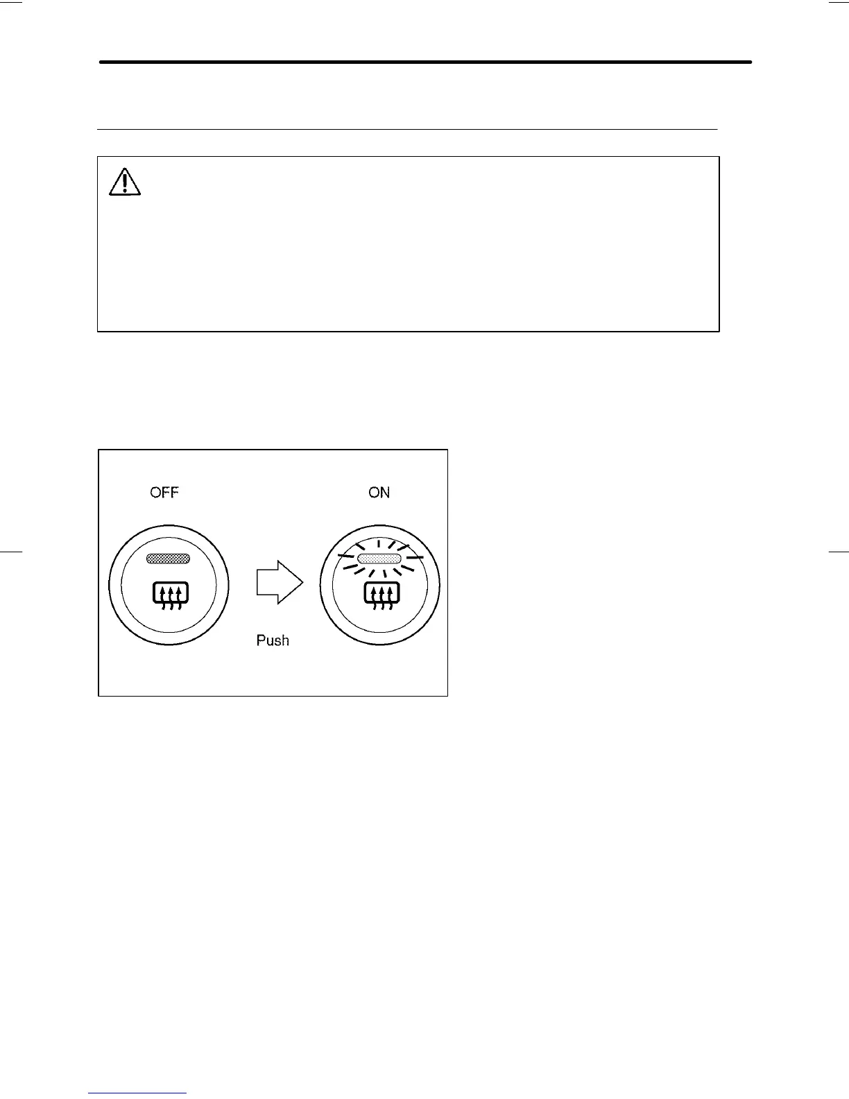 To turn on the defogger, push the switch. To turn it off, push the switch