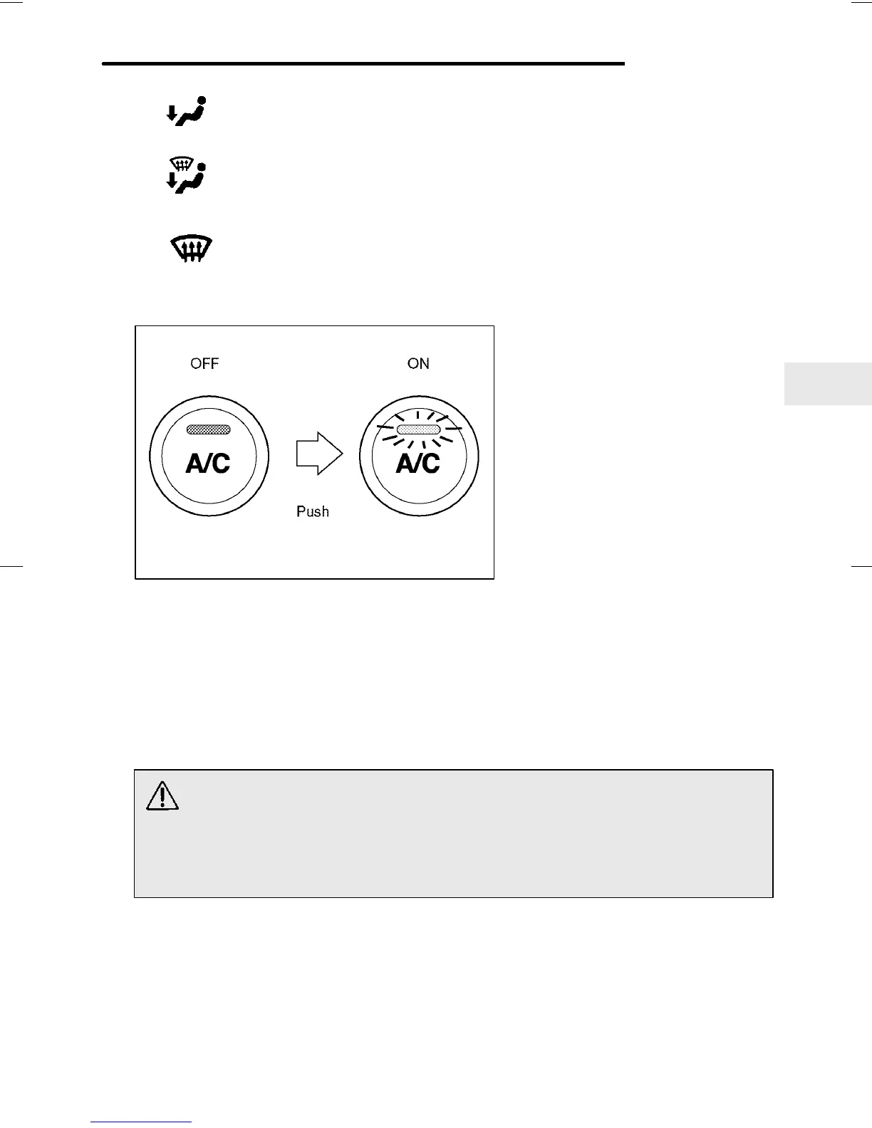 Push the air conditioner button while the fan is in operation to turn on