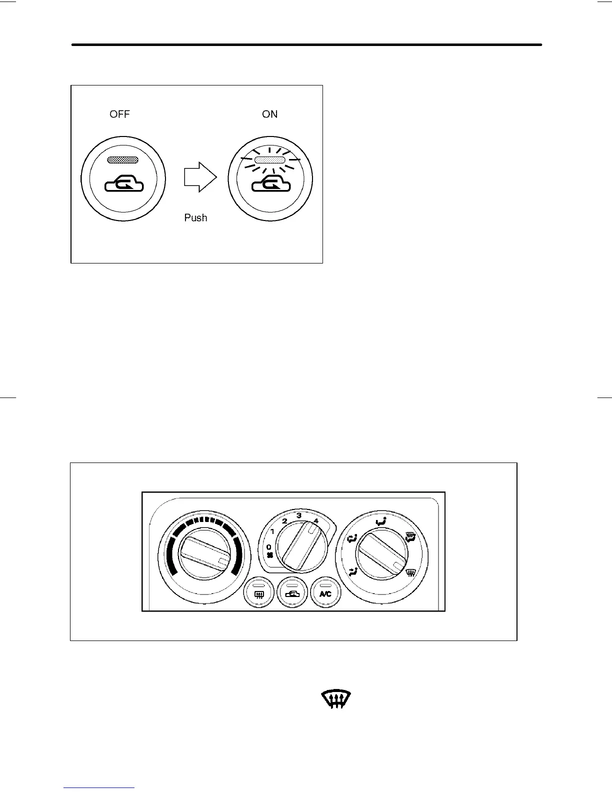 ON position: Interior air is recirculated inside the vehicle. Push the air