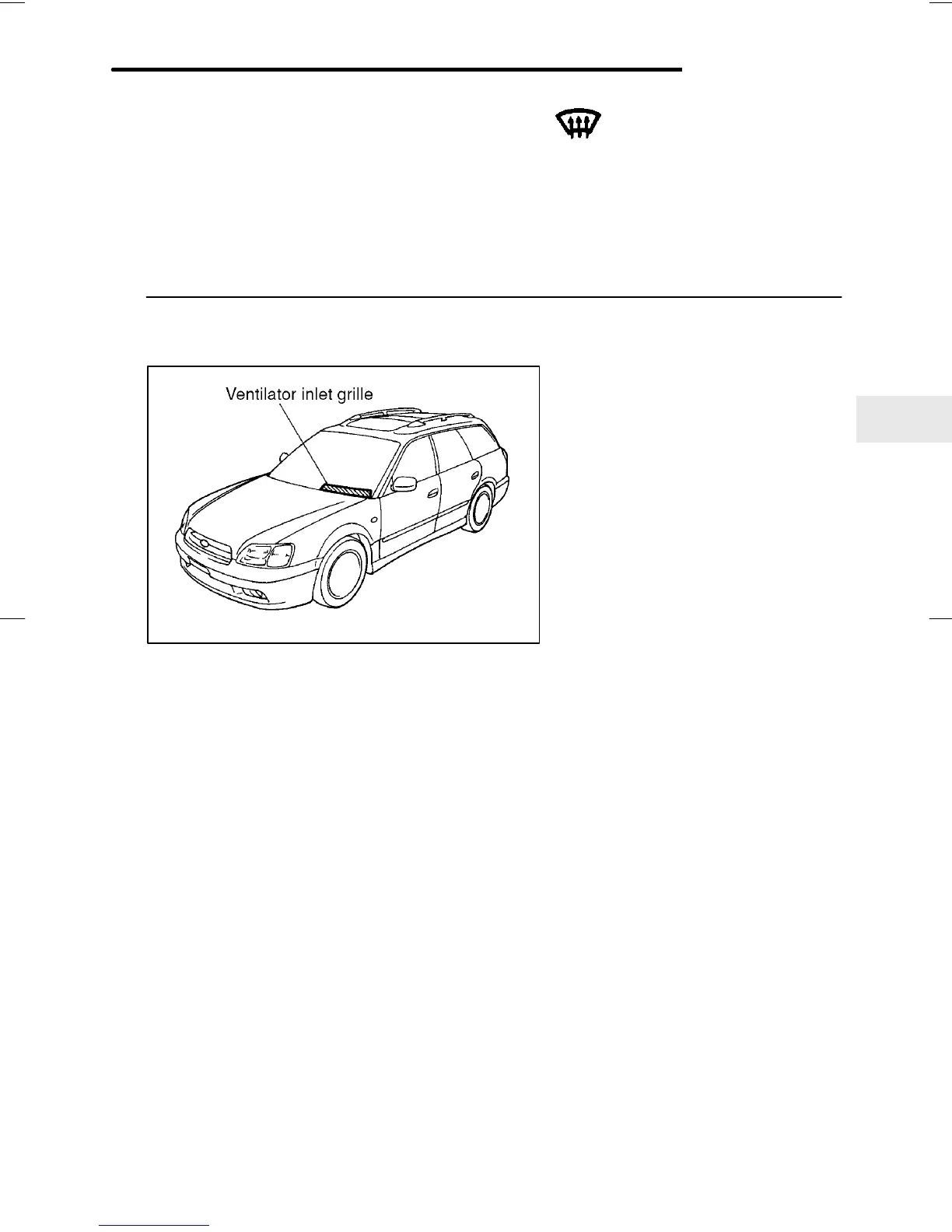 Always keep the front ventilator inlet grille free of snow, leaves, or oth-