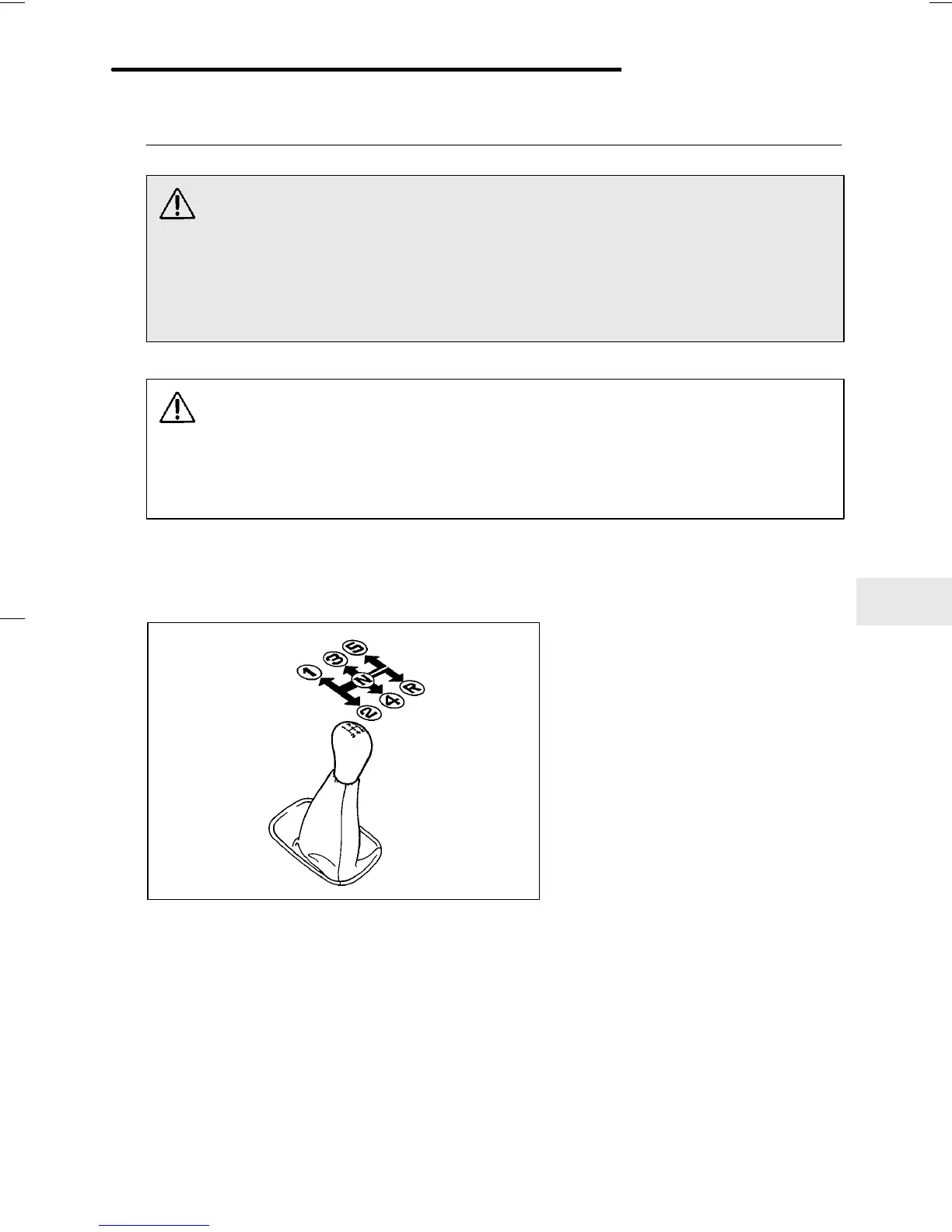 The shift pattern is shown on the shift lever knob. When shifting from 5th