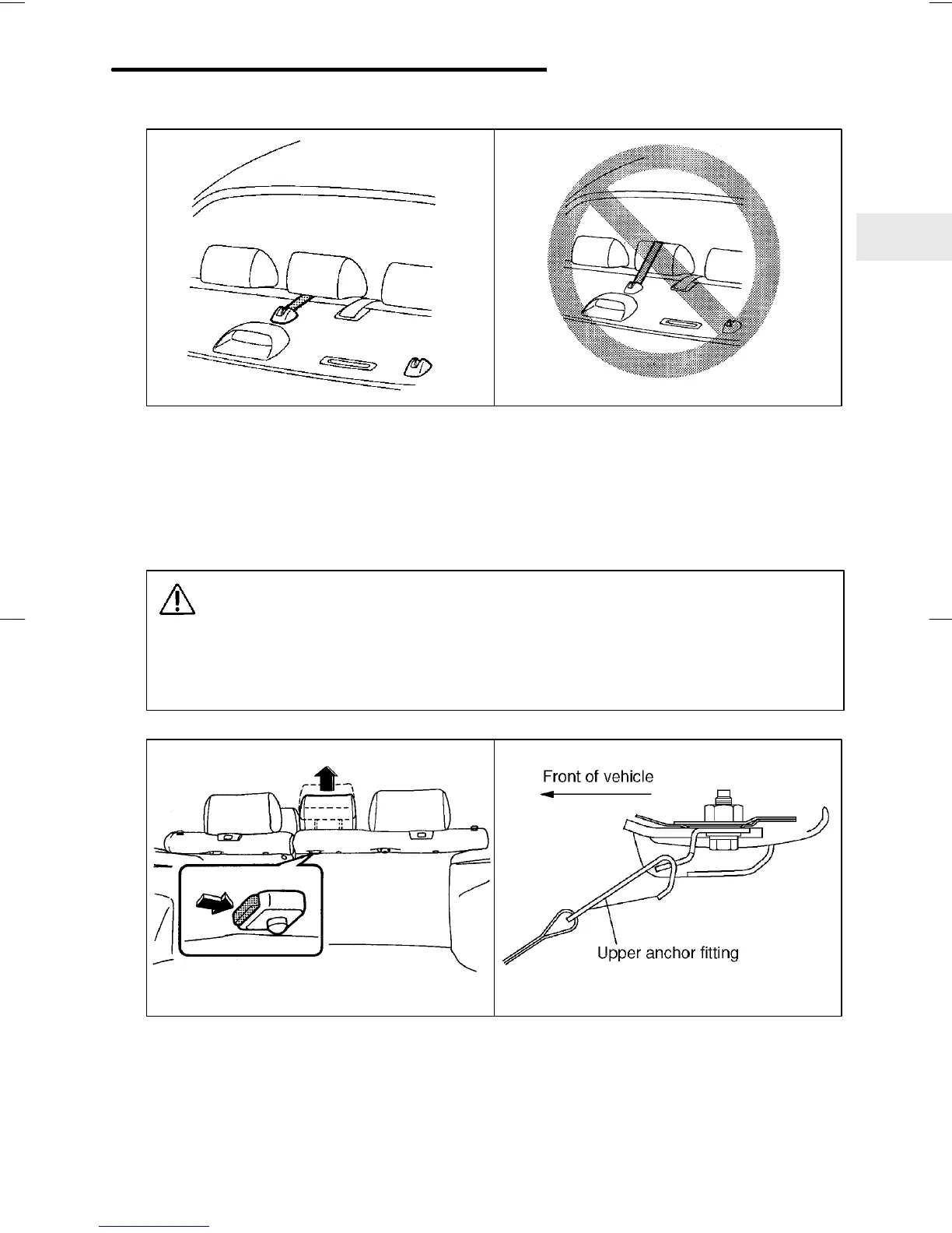where the child restraint has been installed with the seatbelt; lift up