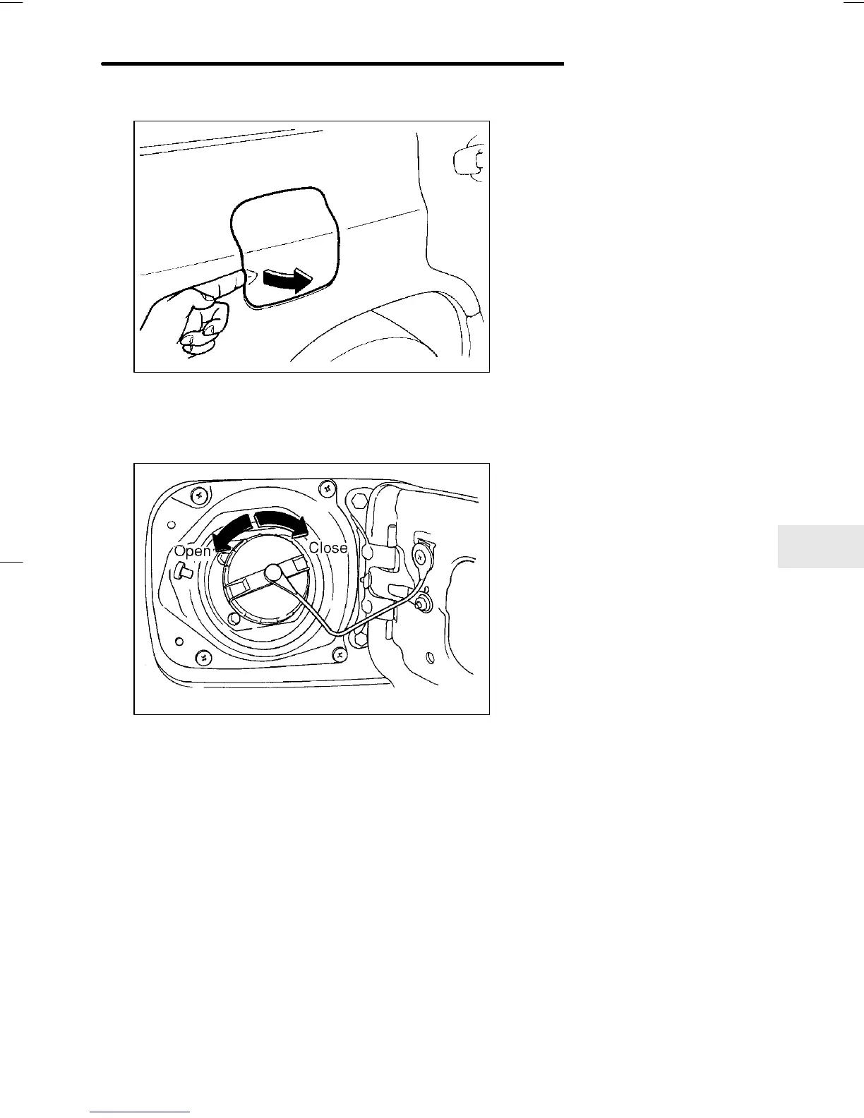 1. To open the fuel filler door, pull it outward. After refueling, be sure